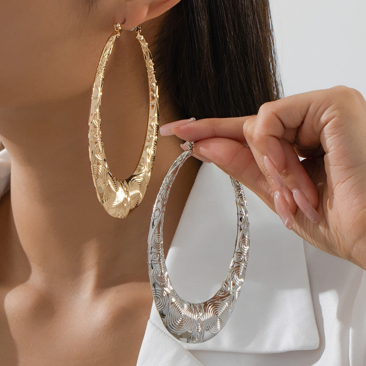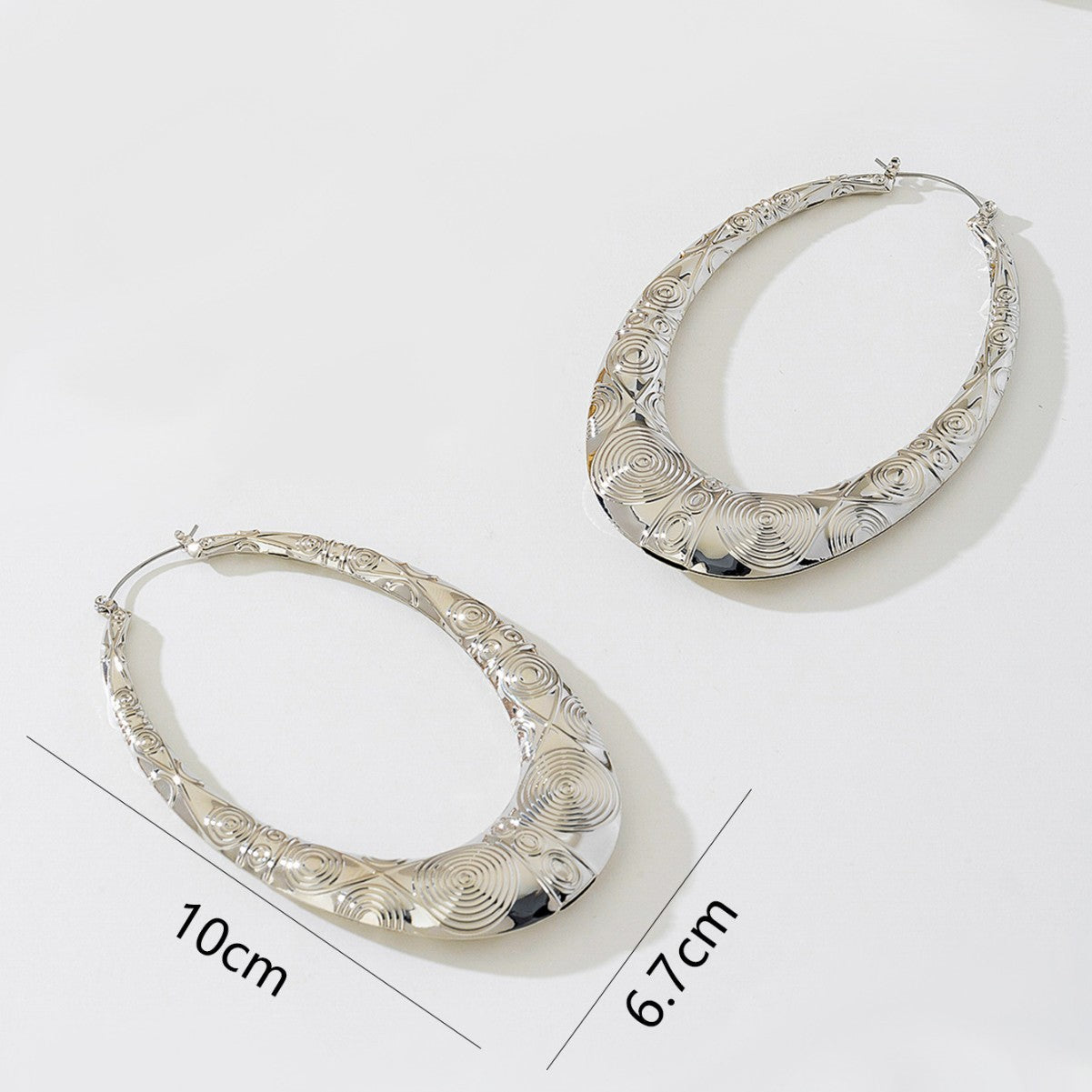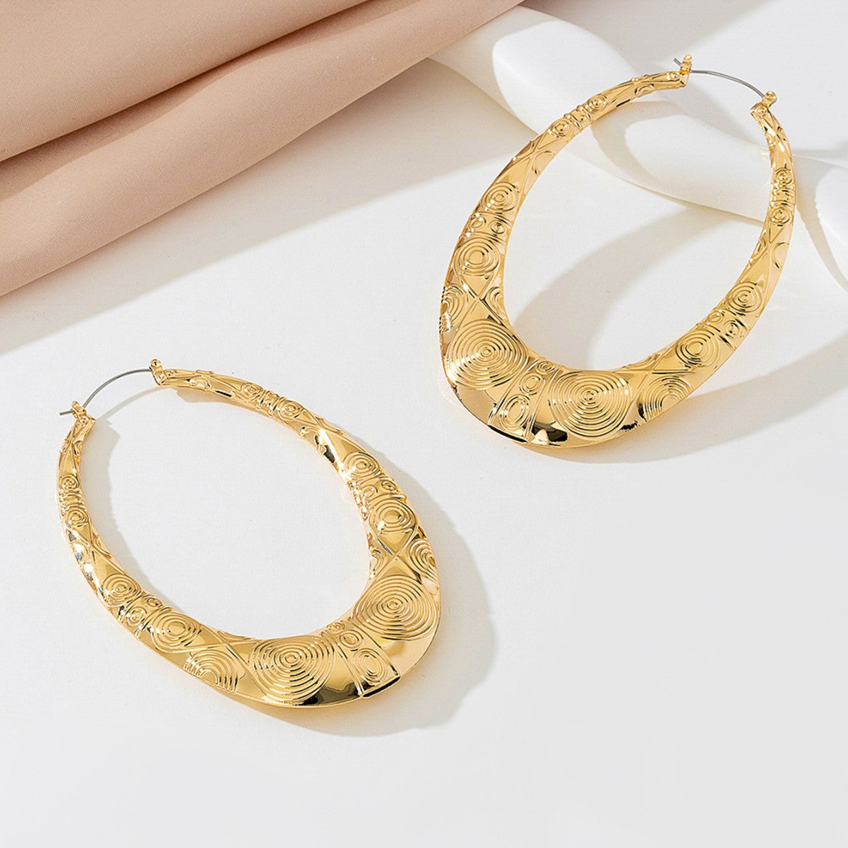 Retro Oval Metal Earrings for Women – Geometric Textured Fashion Jewelry -