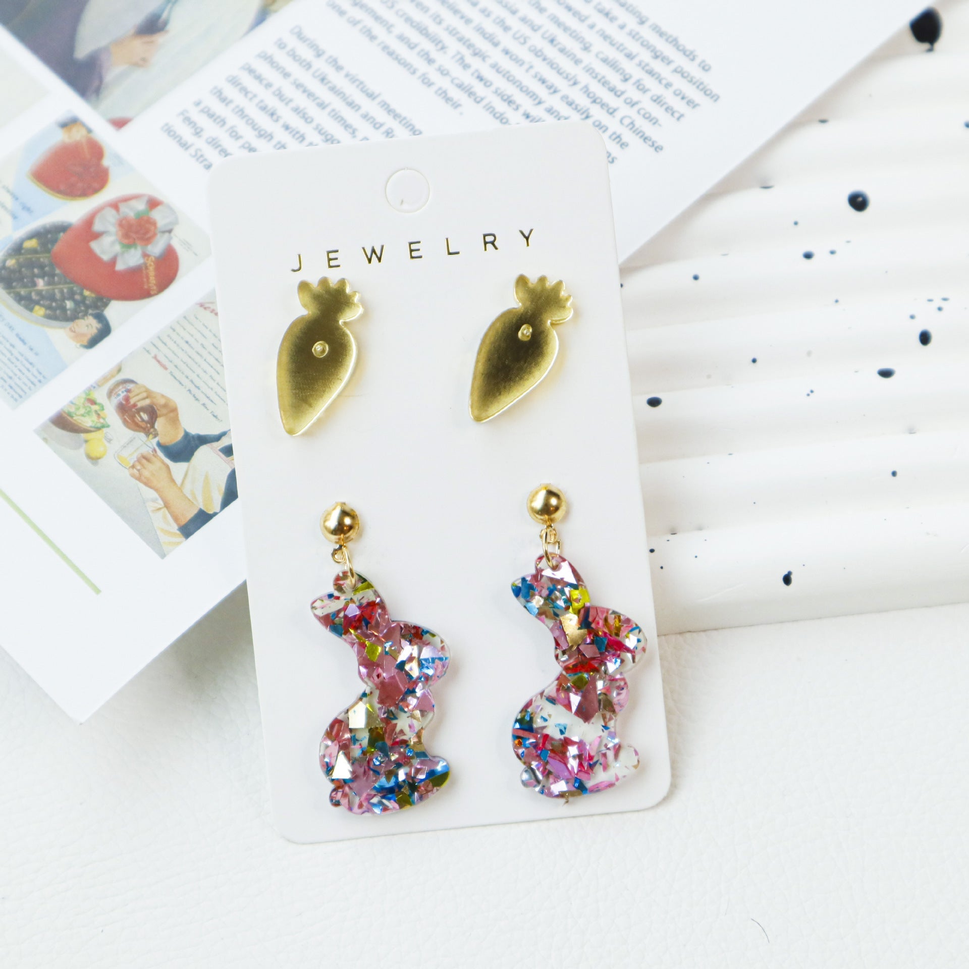 Easter Bunny and Carrot Earrings for Women – Acrylic Animal Jewelry -