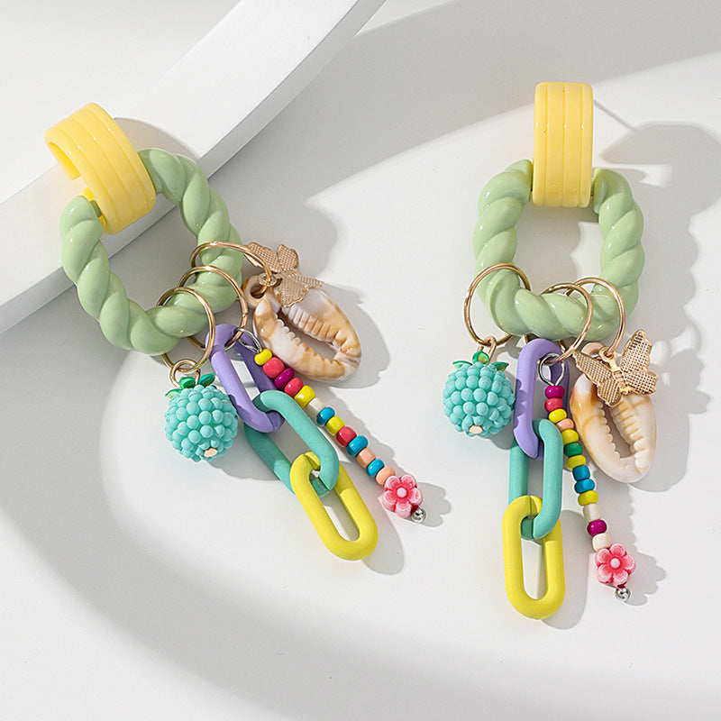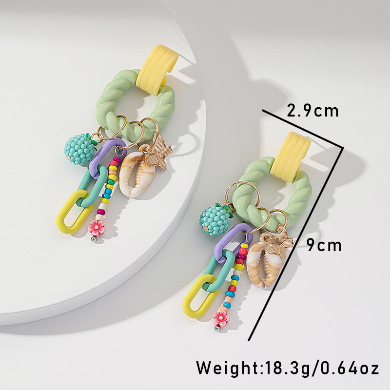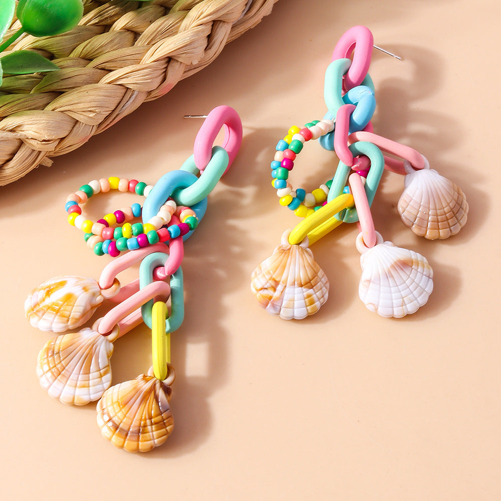 Colorful Beaded Tassel Earrings for Women – Acrylic Geometric Shell Jewelry -