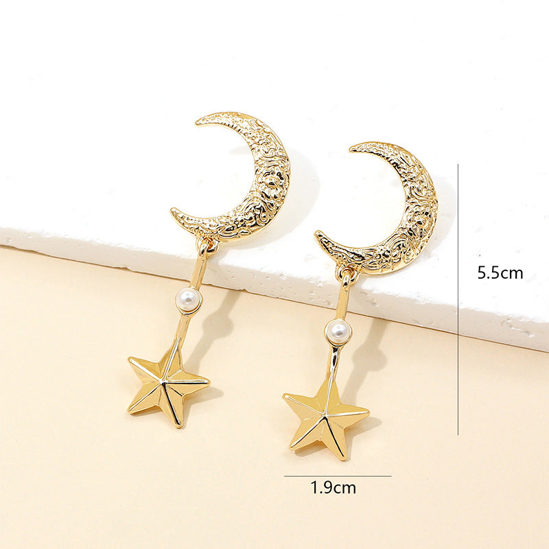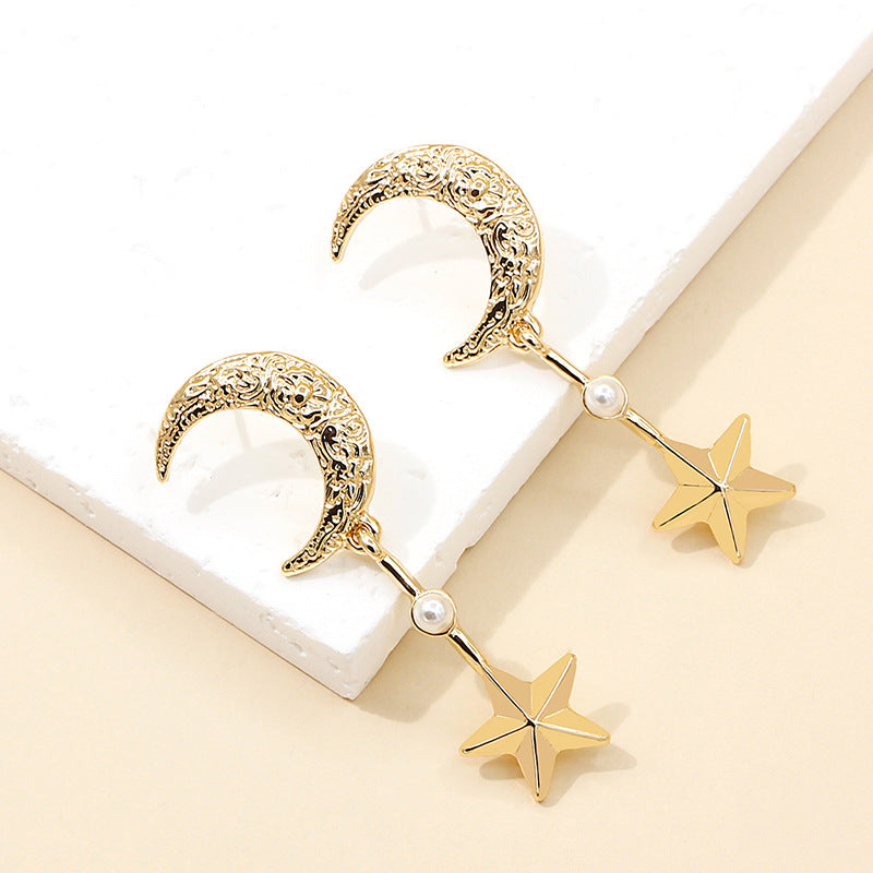 Women’s Korean Moon and Star Earrings – Trendy Alloy Fashion Jewelry -