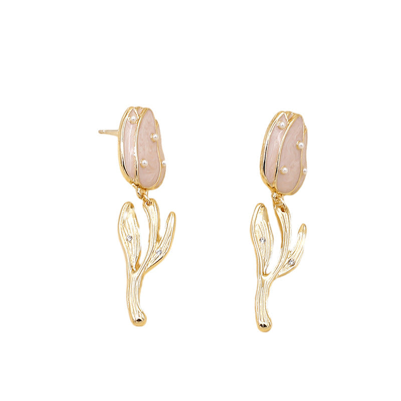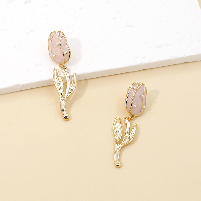 Women’s Retro Tulip Pearl Earrings – Alloy Diamond Drop Jewelry -