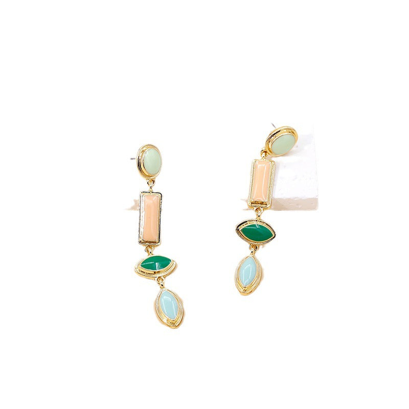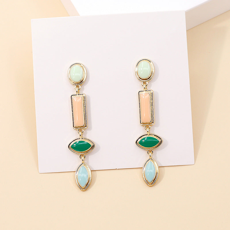 Colorful Enamel Drop Earrings for Women – Geometric Zinc Alloy Jewelry -