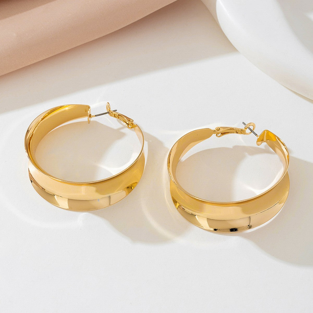 Large Gold Hoop Earrings for Women – Geometric Hollow Metal Jewelry -