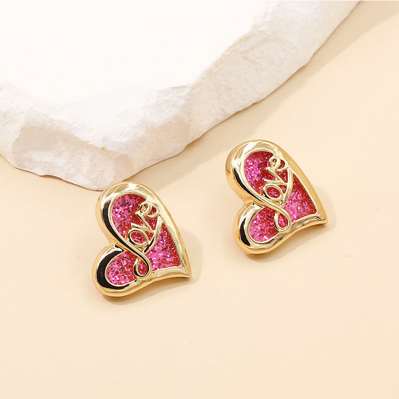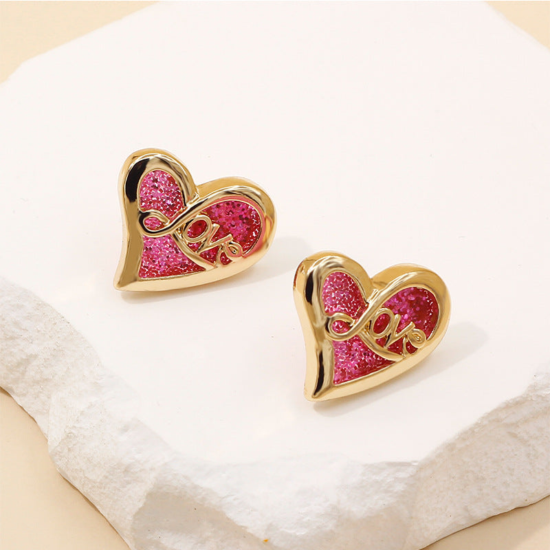 Women’s French Retro Heart Earrings – Zircon Alloy Fashion Jewelry -