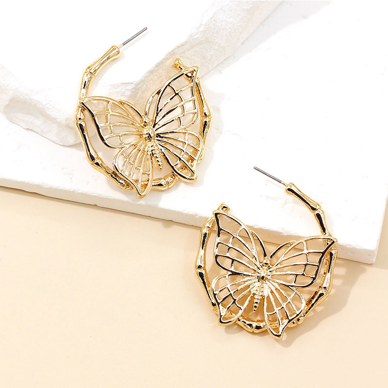 Women’s Gold-Plated Butterfly Earrings – Luxury Alloy Fashion Jewelry Design -