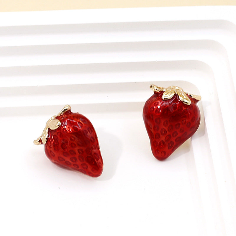 Cute Strawberry Earrings for Women – Red Fruit Pastoral Style Jewelry -