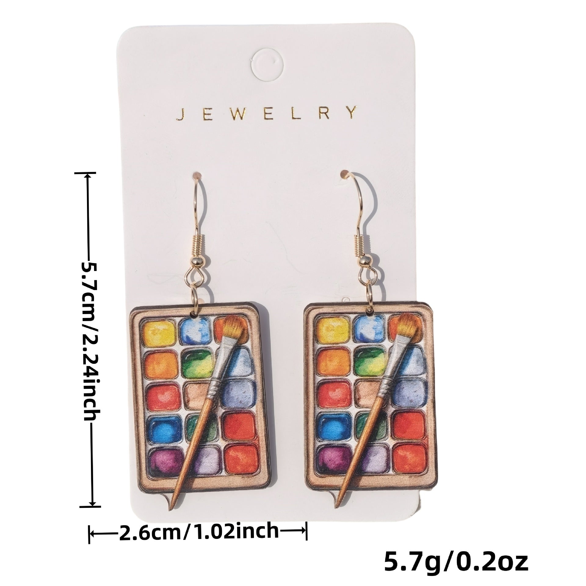 3D Wooden Palette Earrings for Couples – Colorful Geometric Statement Jewelry -