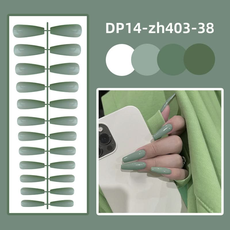 Long Ballet Shiny Trapezoidal Nail Stickers – 24-Piece Solid Color Set -