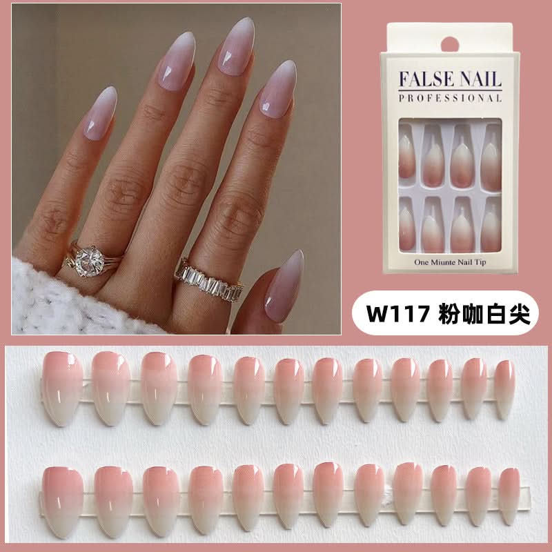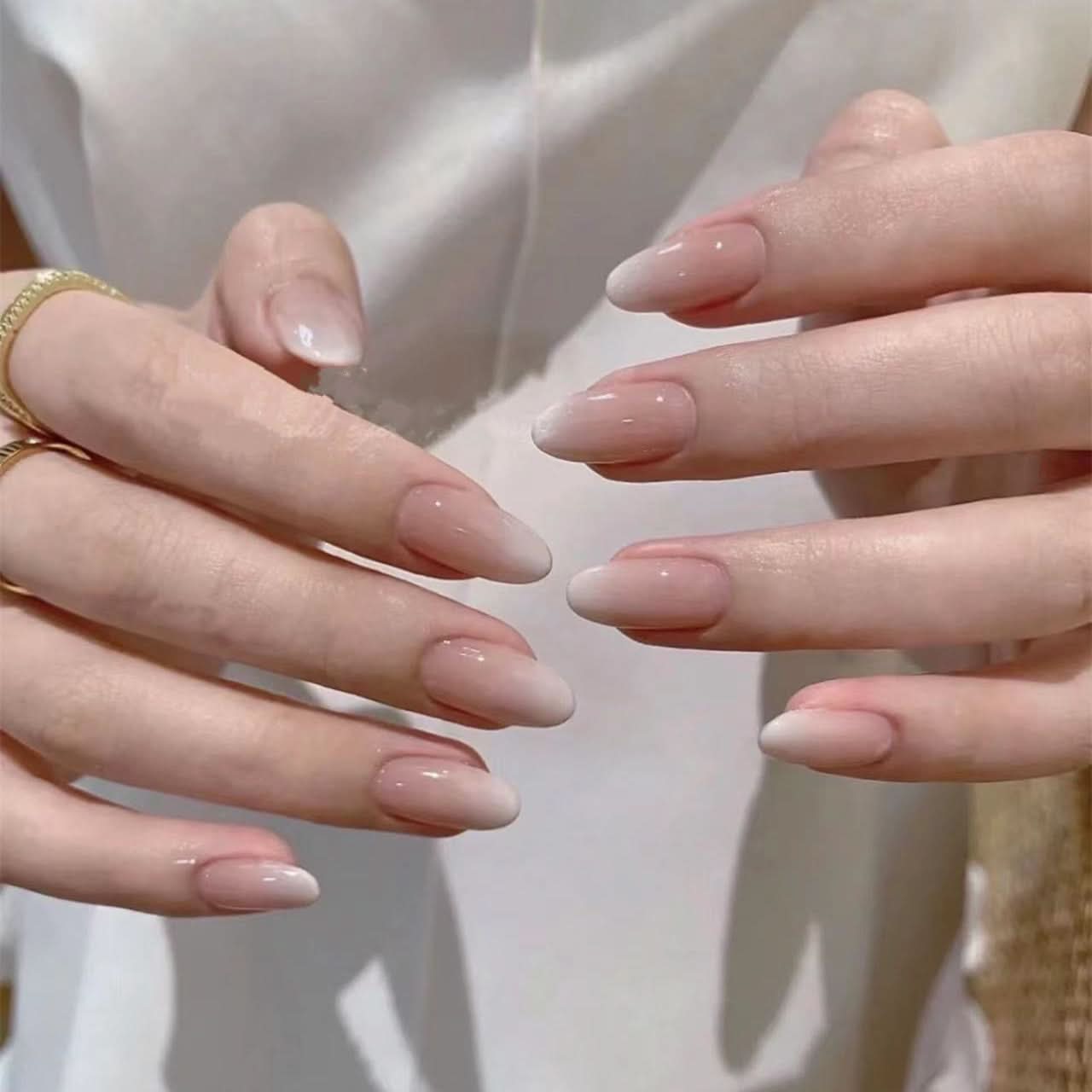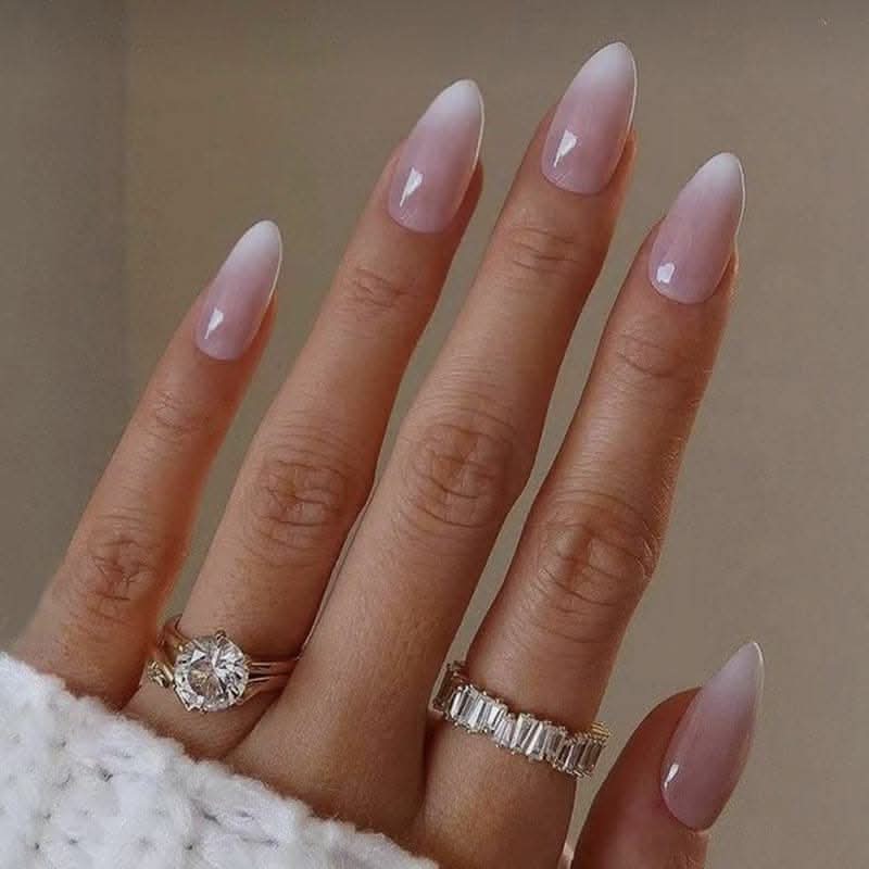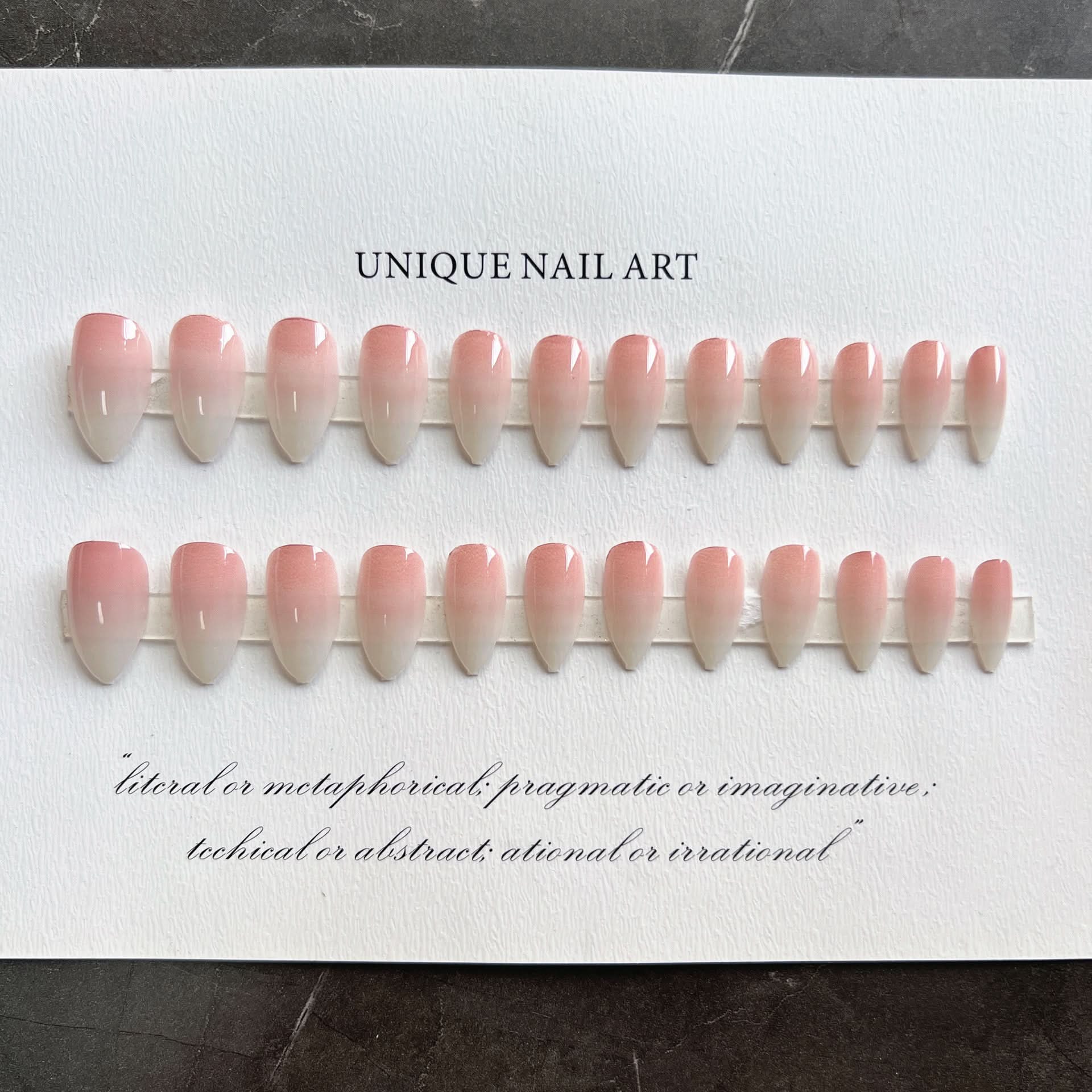 24-Piece Gradient Ice Powder Almond Nails – European & American Style