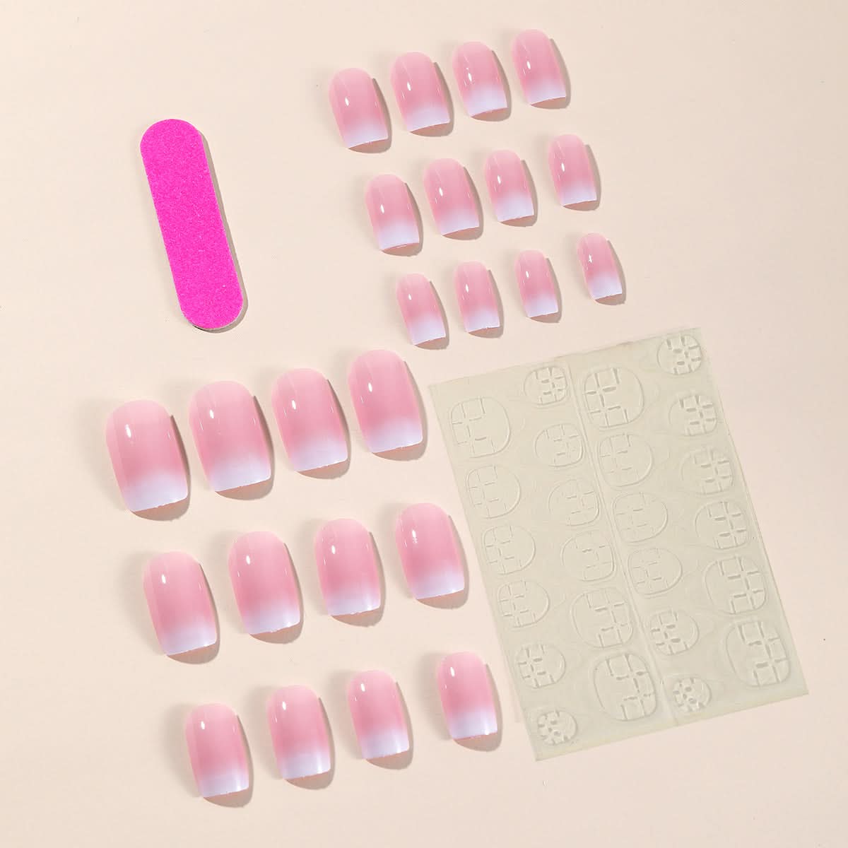 Gradient Pink & White Press-On Nail Art – Removable Square Pieces -