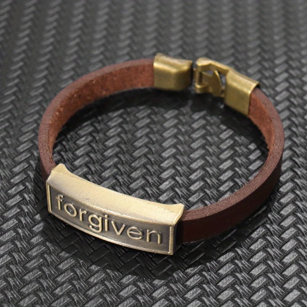 Men’s "Forgiven" PU Leather Bracelet, Adjustable -