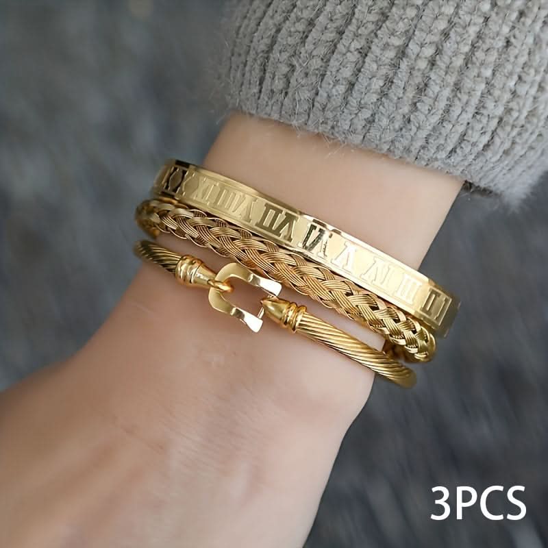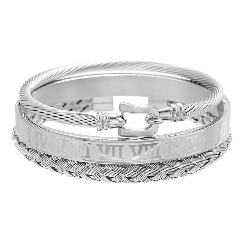 Pack of 3 Pcs. Unisex Roman Braided Titanium Bracelet Set -
