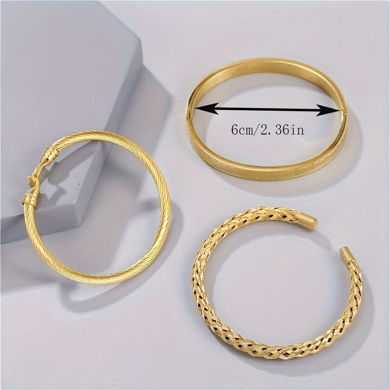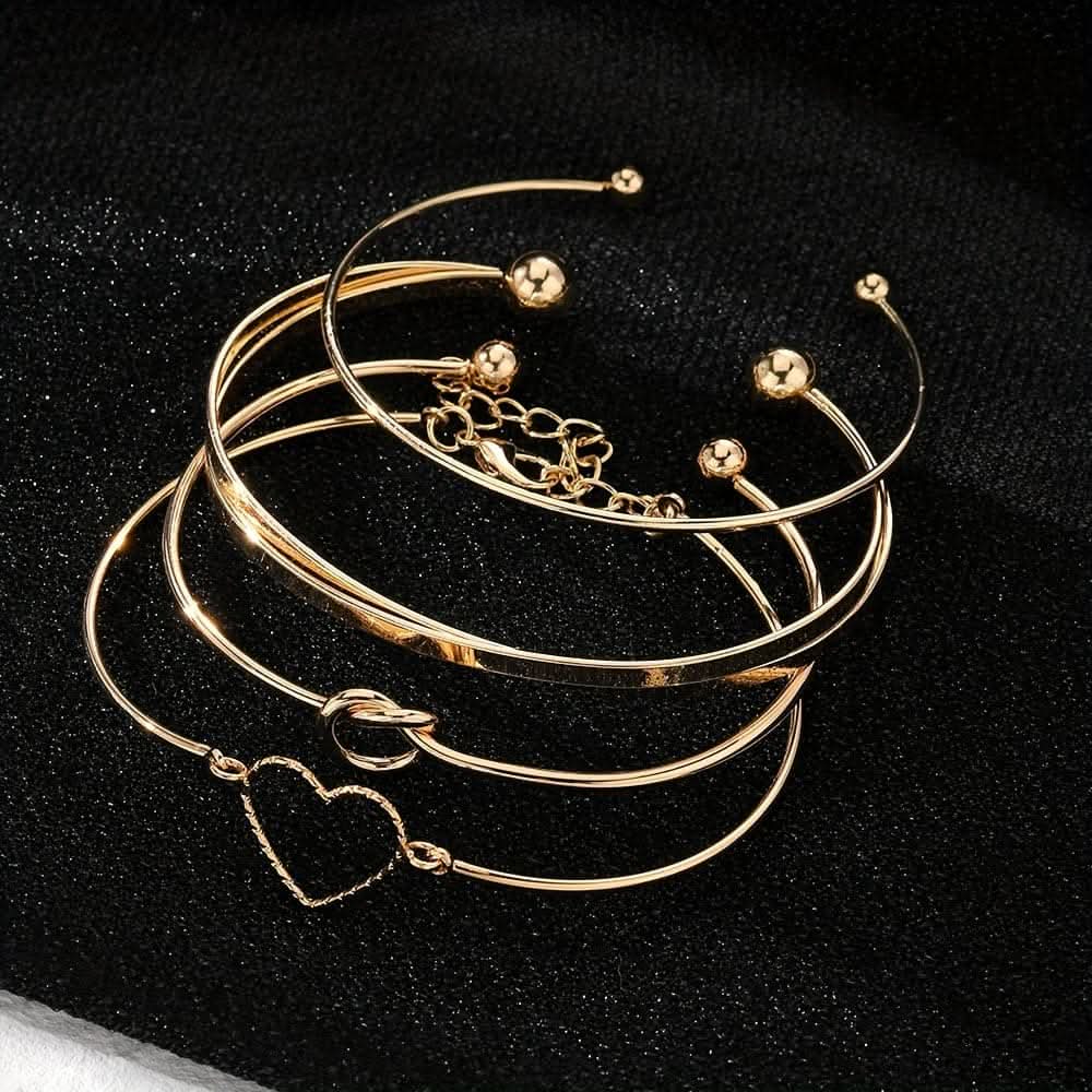 4pcs Golden Knotted Love Cuff Bangle Set – Stackable Alloy Bracelets -