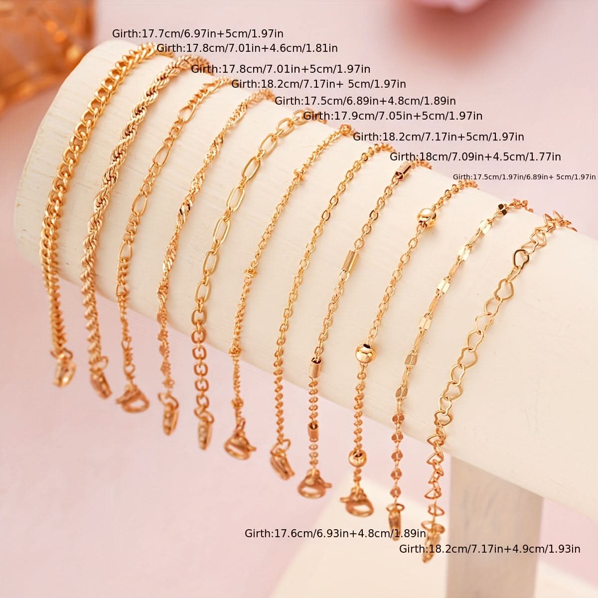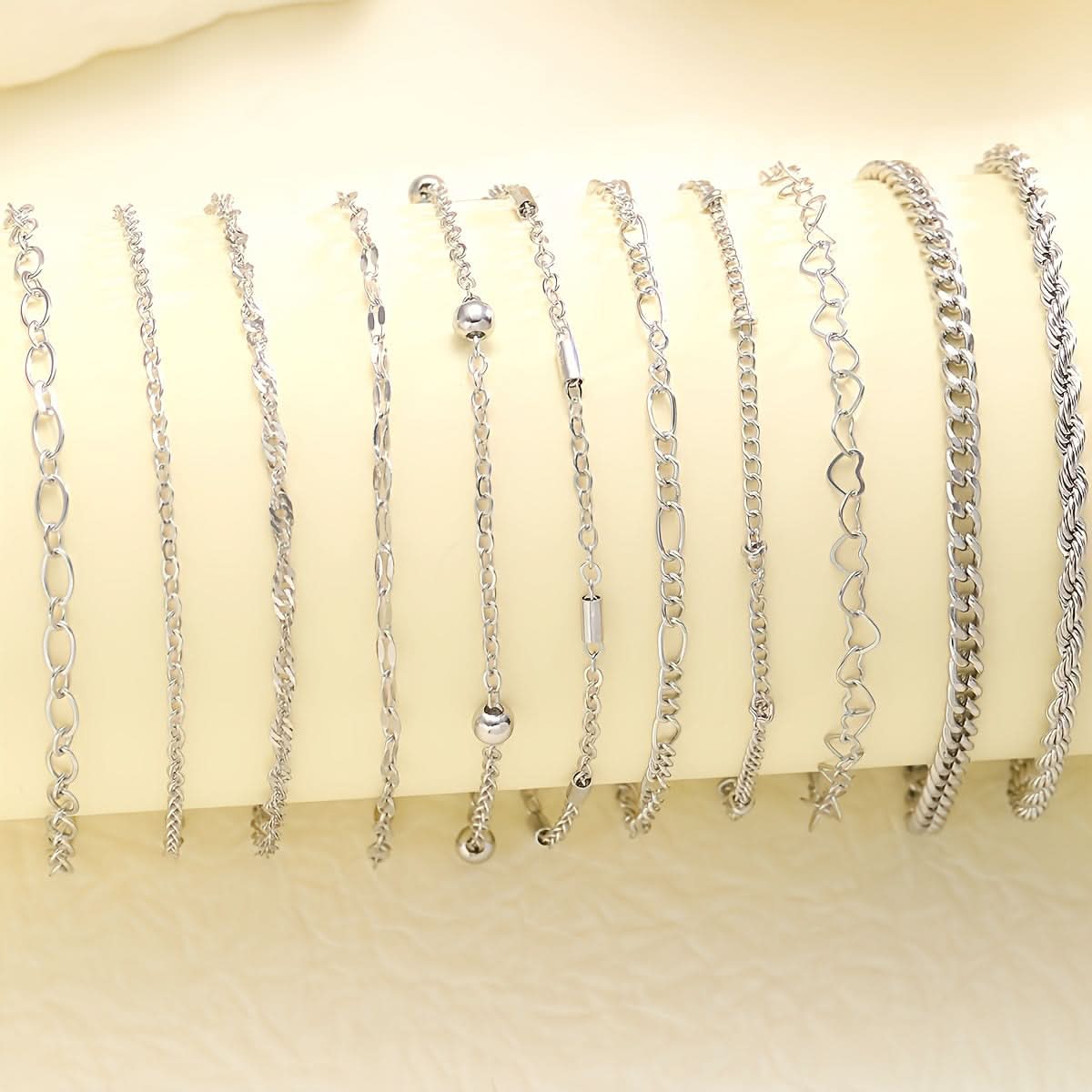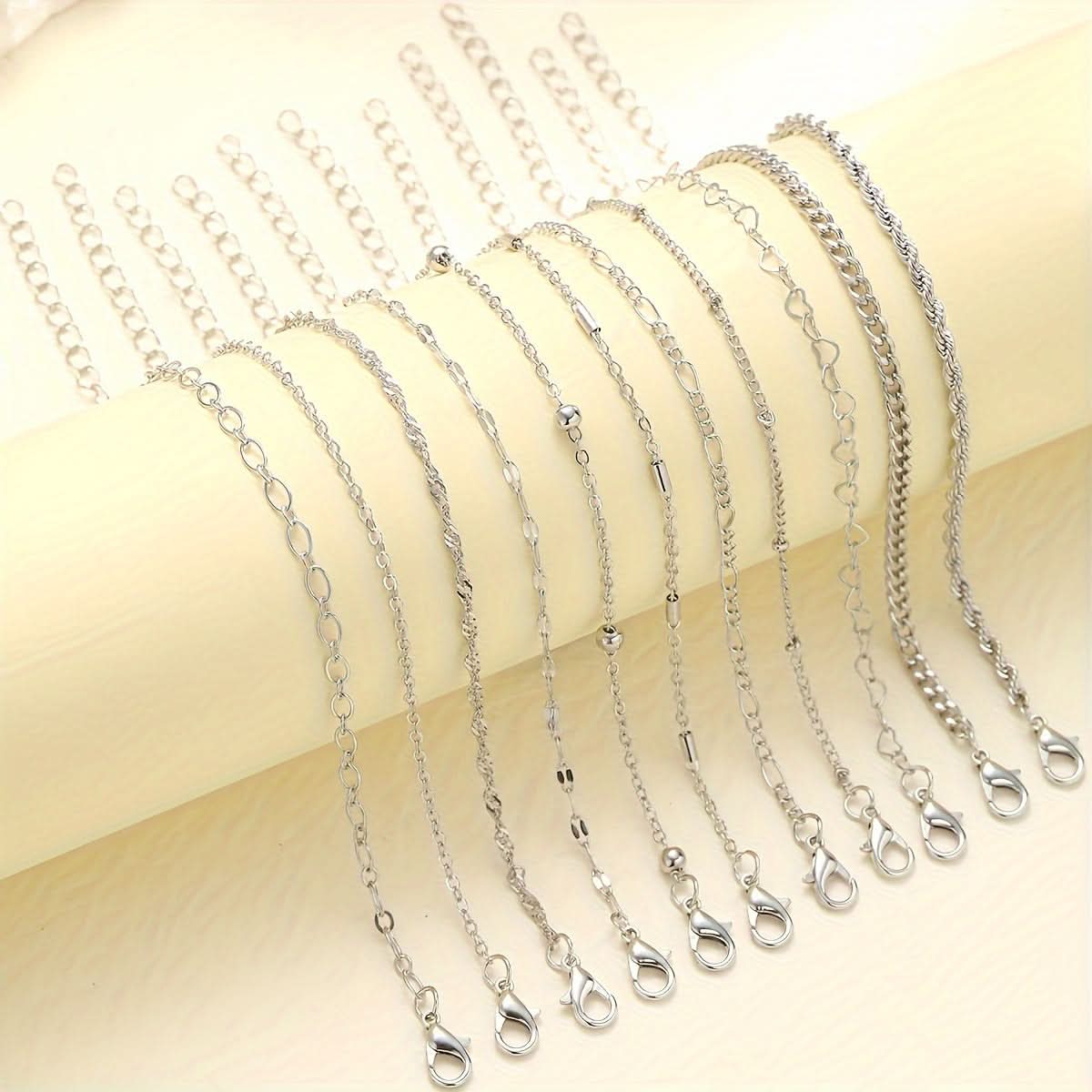 Pack of 11-Piece Simple Chain Twist Anklet Set