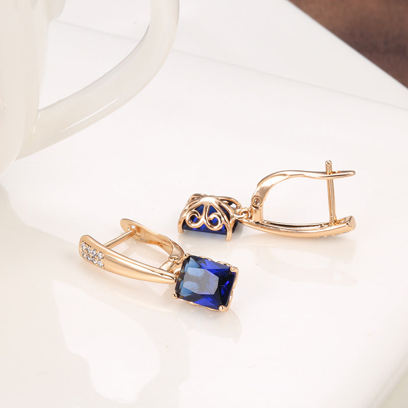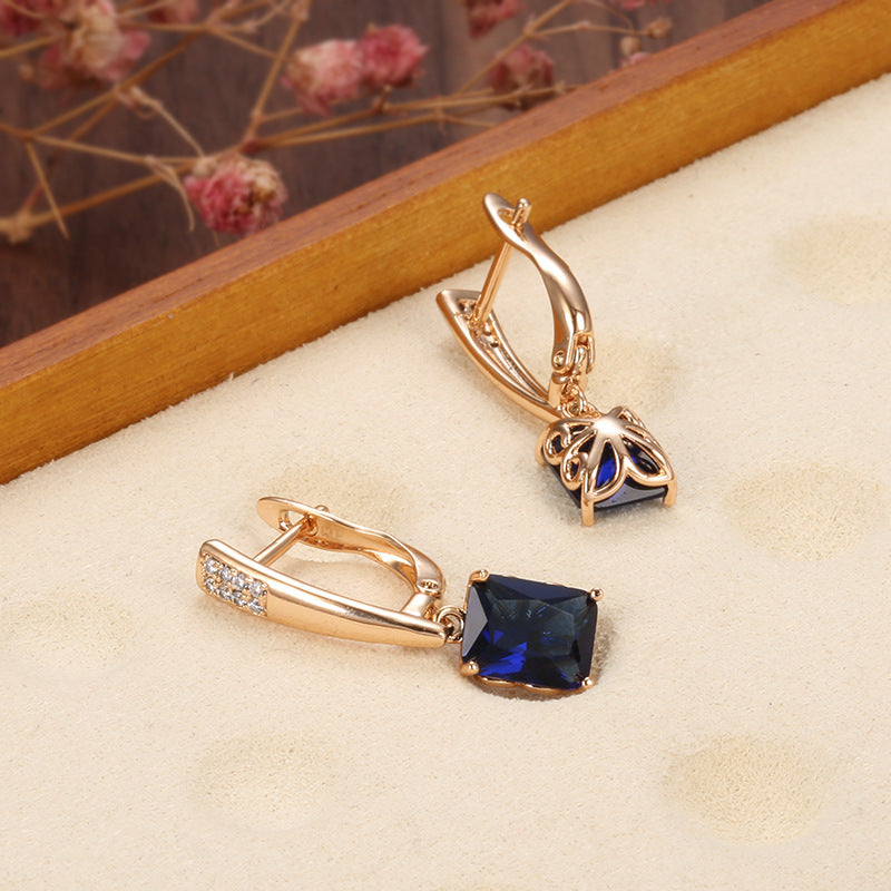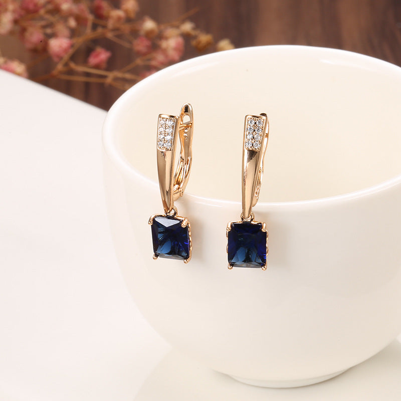Blue Zircon Earrings – Geometric Rectangle Jewelry for Women -