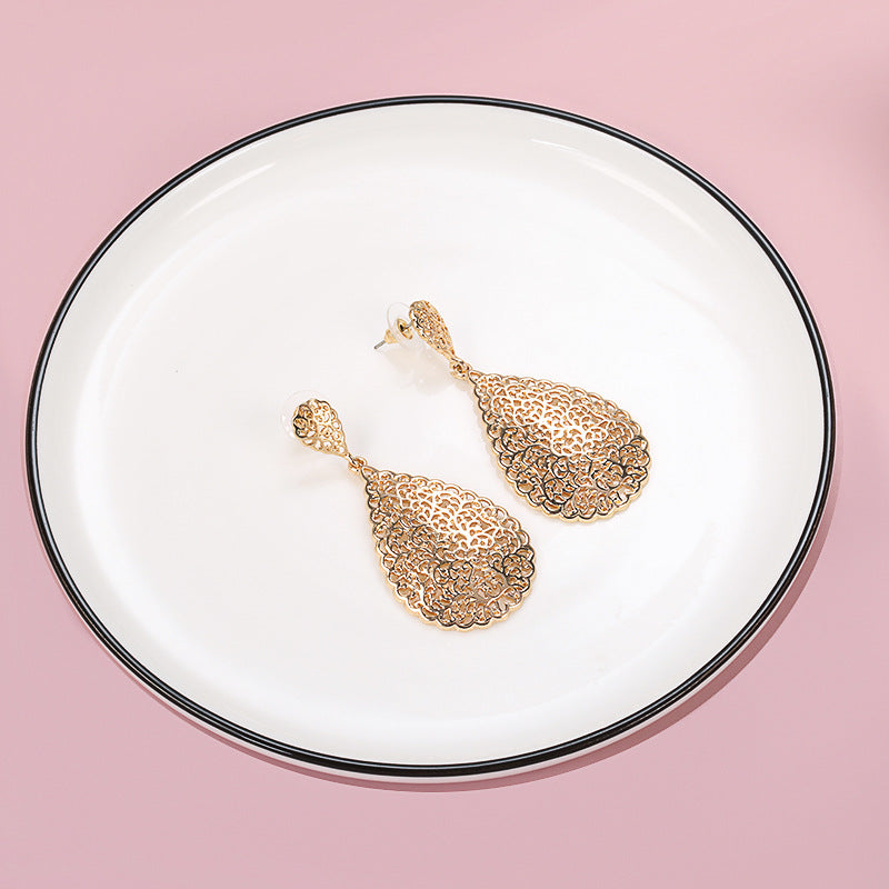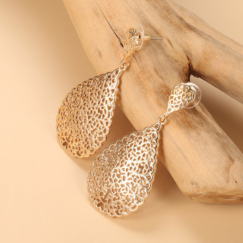 Rose Gold Leaf Hollow Earrings – Ethnic Style Geometric Jewelry -
