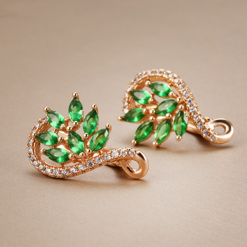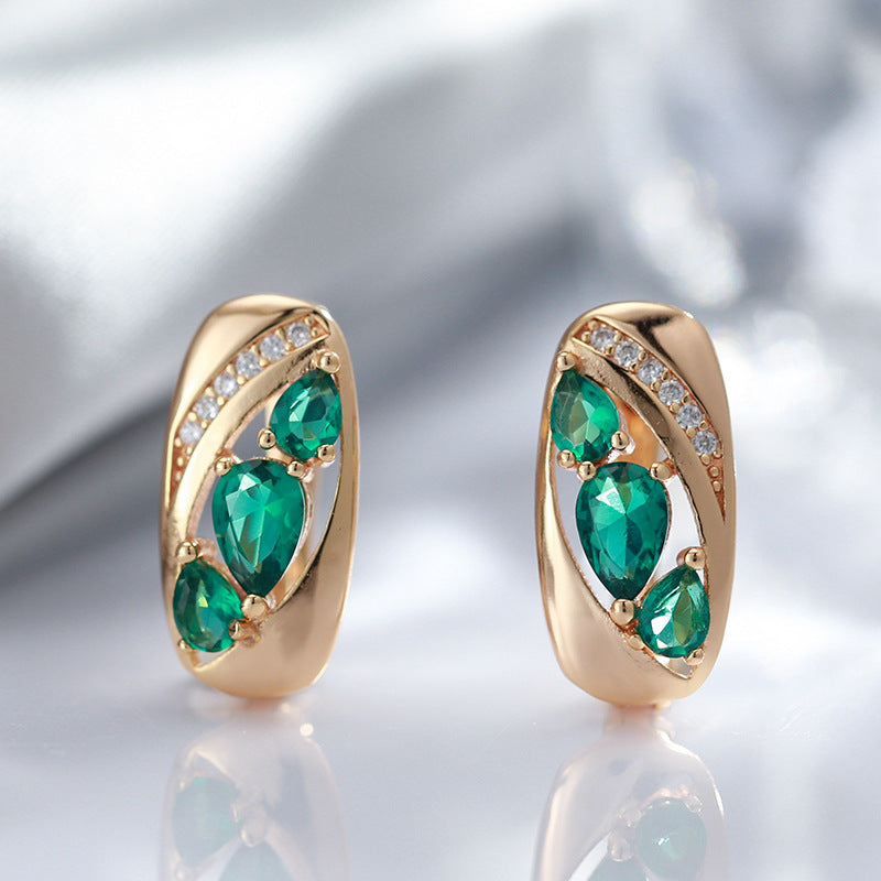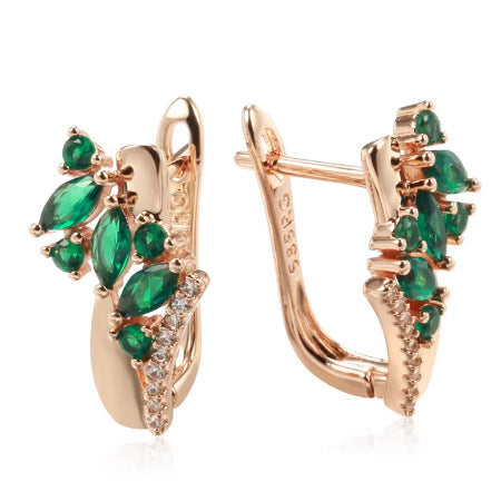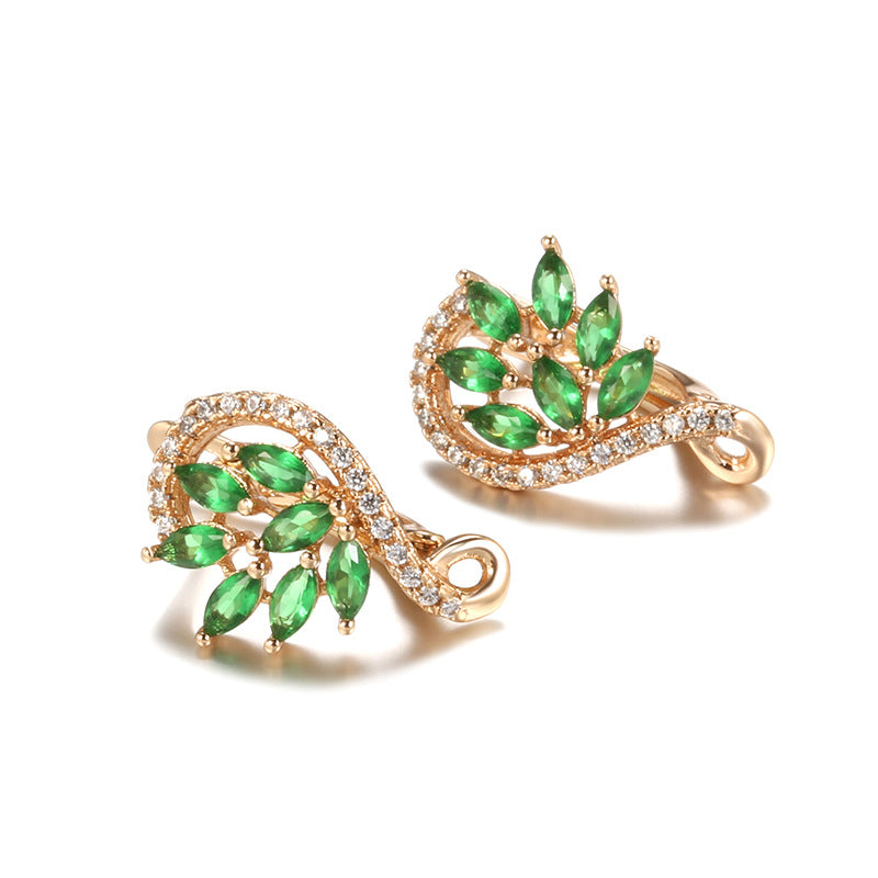 Green Zircon Leaf Earrings – Geometric Copper Jewelry for Women -