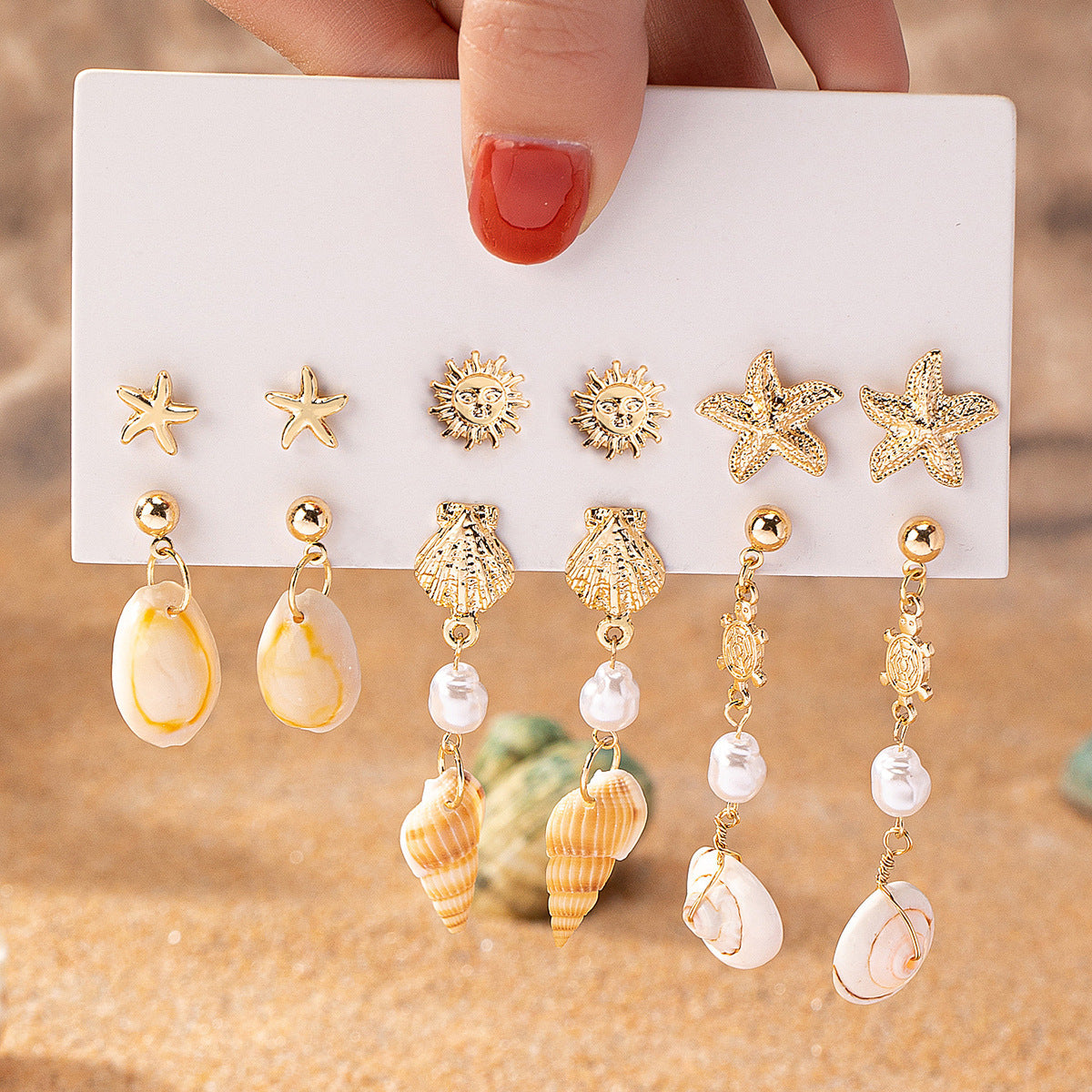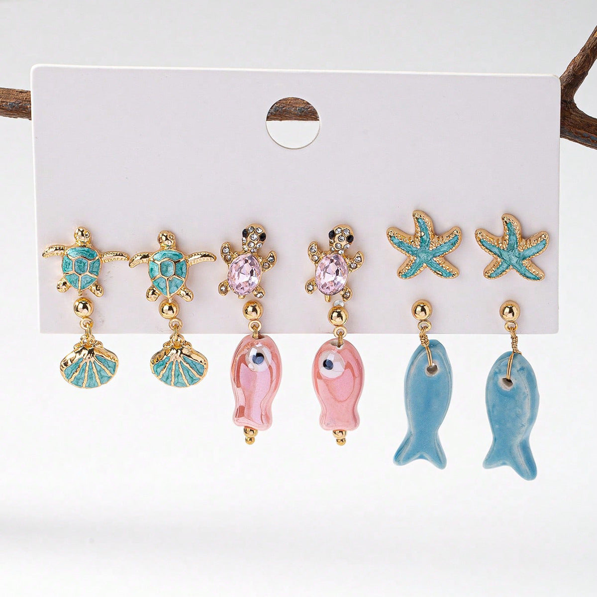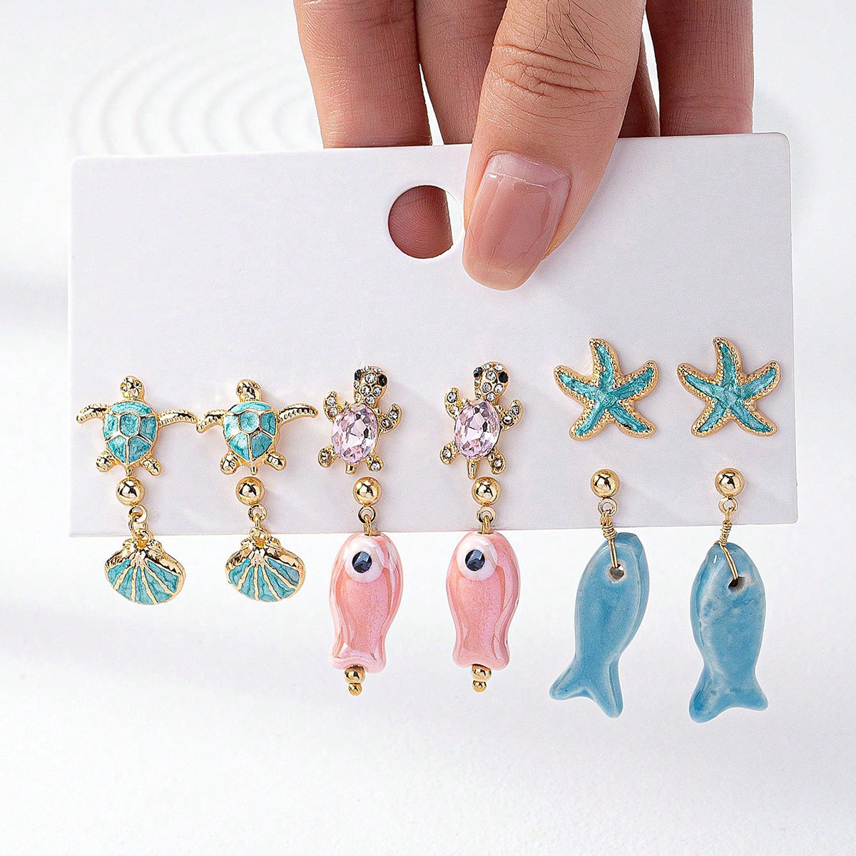 Marine Life Earrings Combo Set – 6 Pairs Holiday Style Jewelry -