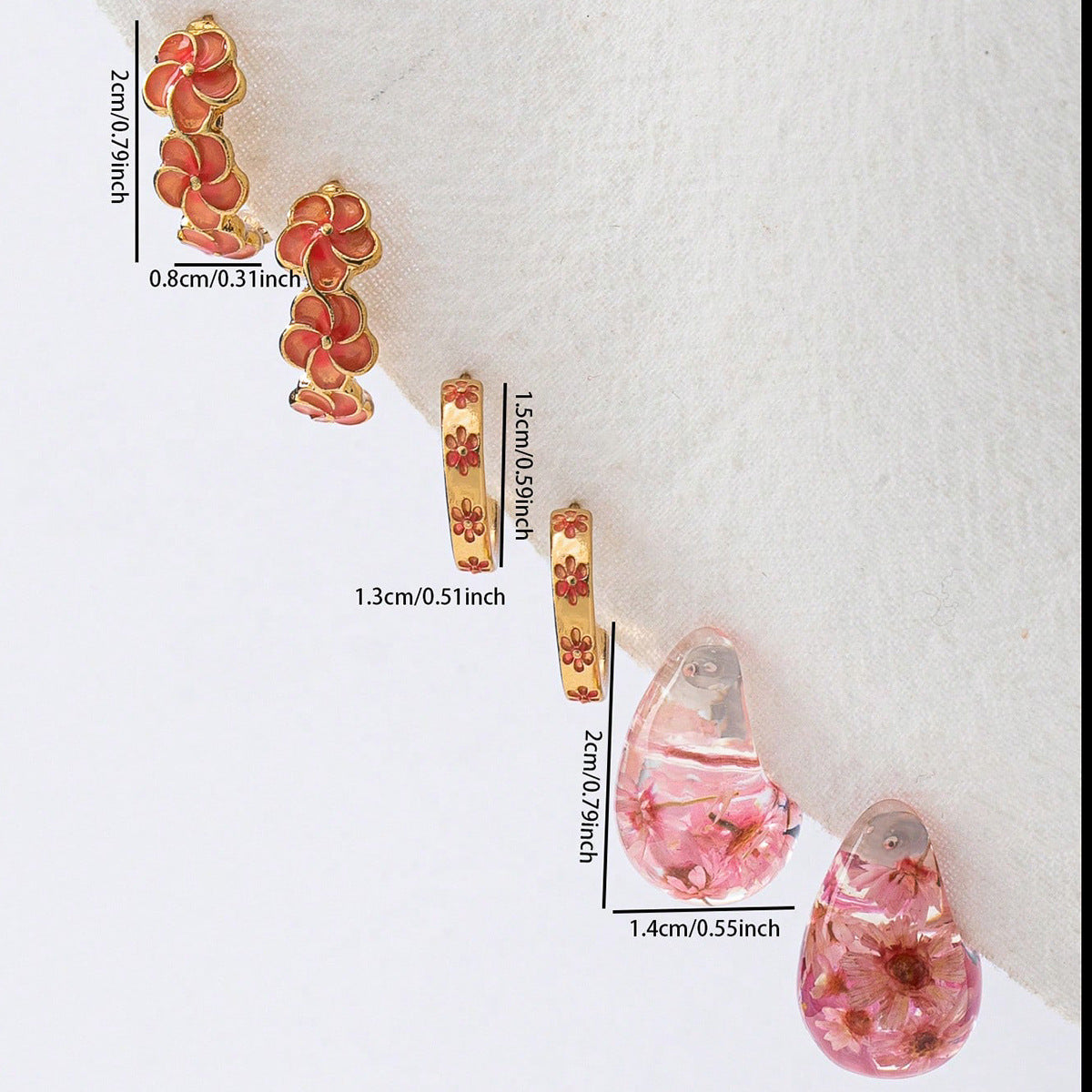 Women’s Flower Resin Earrings Set – Multicolor Drop Earrings, Summer Jewelry ( 3 Pairs) -