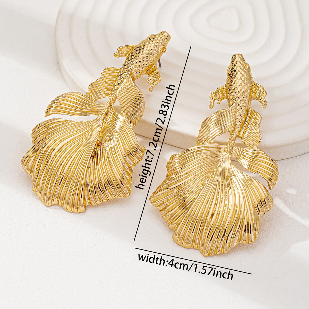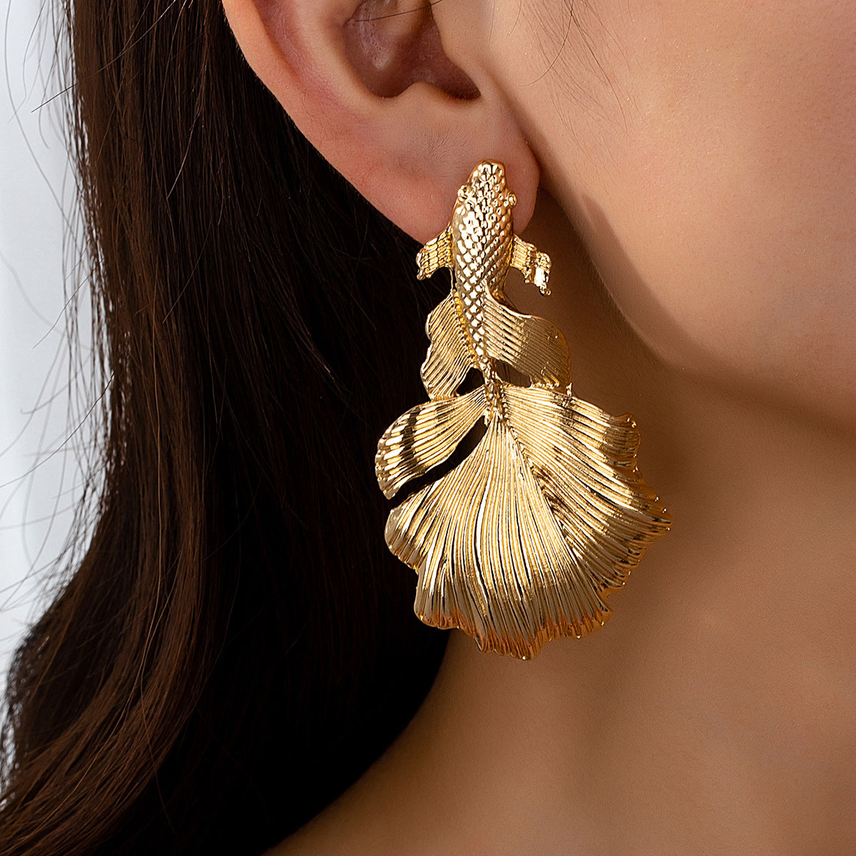 Gold Wave Fishtail Earrings – Resort Style Metal Jewelry -