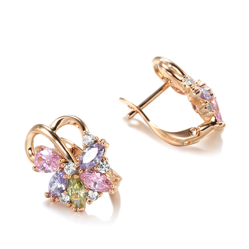 Rose Gold Floral Zircon Earrings – Simple Geometric Jewelry -