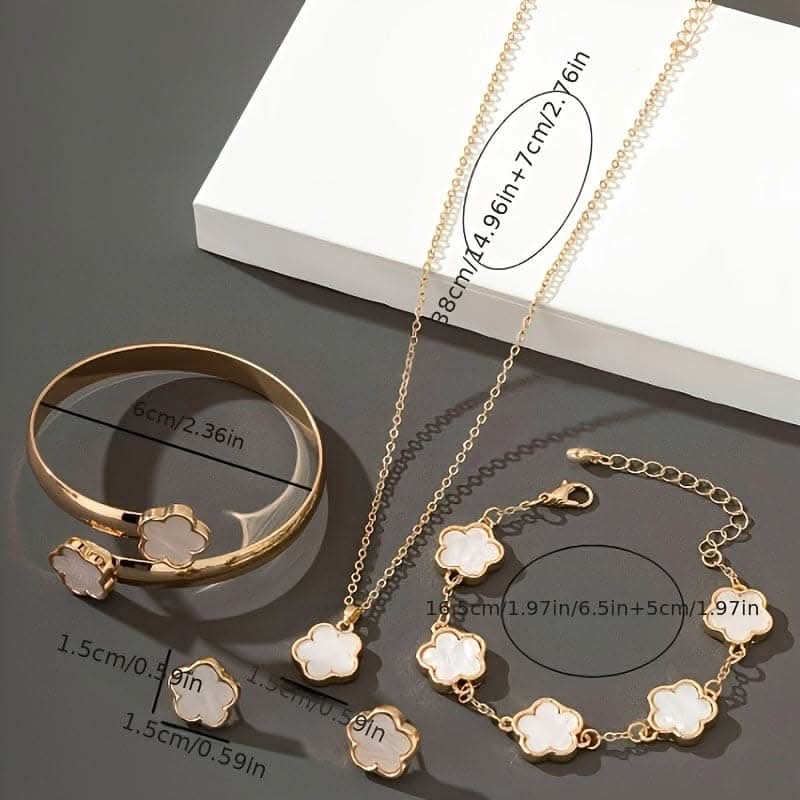 Lucky Flower Jewelry Set – Earrings, Necklace, Bracelet, Bangle -