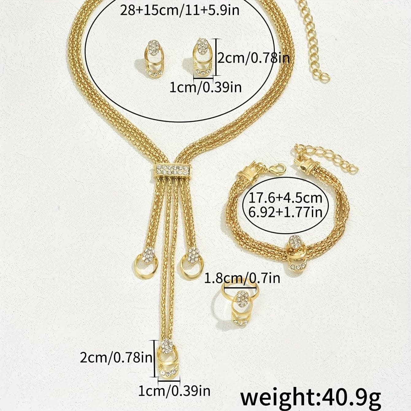 Chic 14k Gold-Plated Jewelry Set – Necklace, Bracelet, Ring -