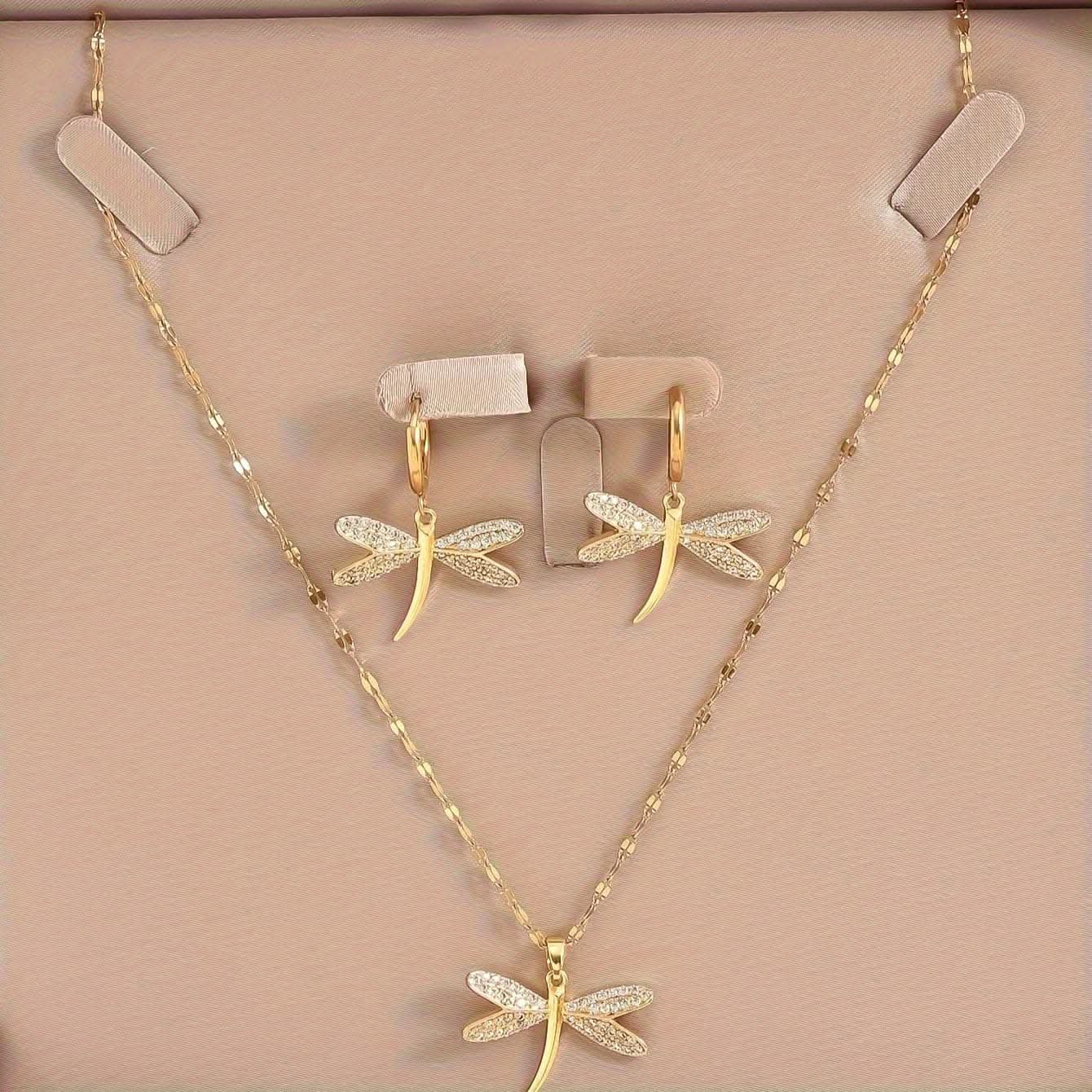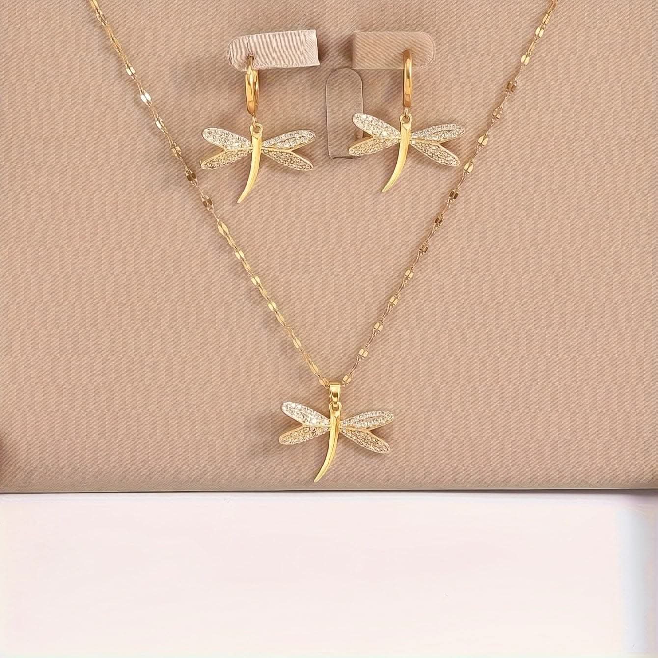 2 Piece Golden Dragonfly Pendant Set -