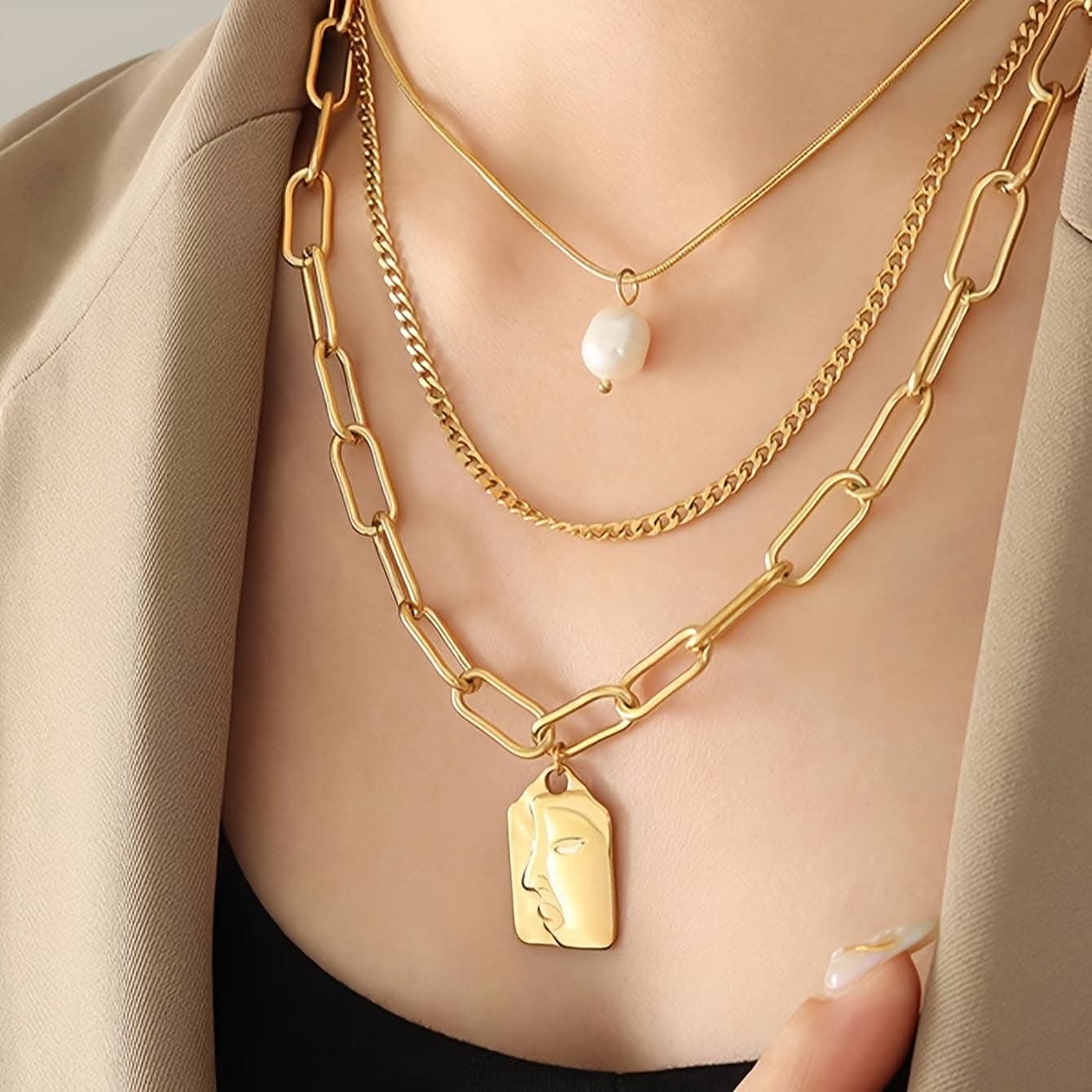 3-Piece Layered Necklace Set – Vintage & Elegant Gold-Plated -