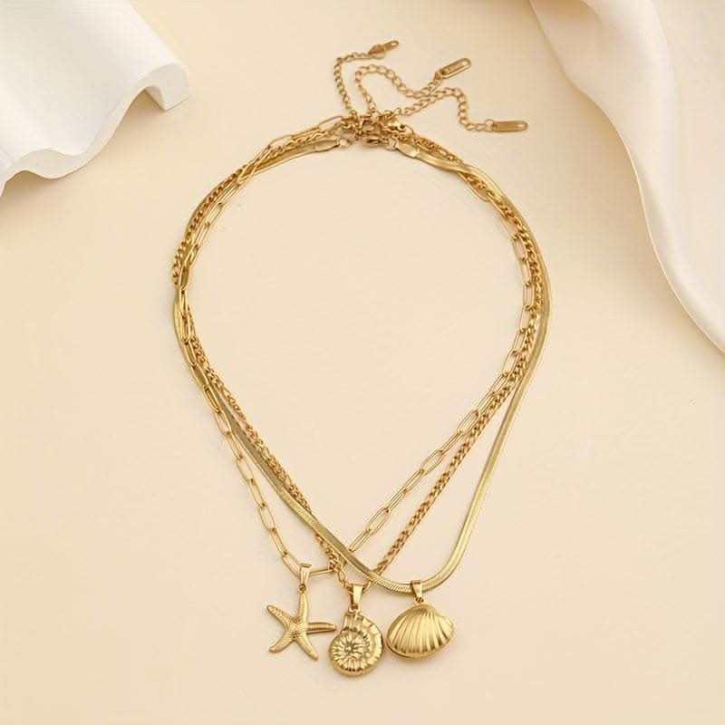 2pcs Multi-Layered Ocean-Inspired Necklaces – Starfish & Shell Pendants -