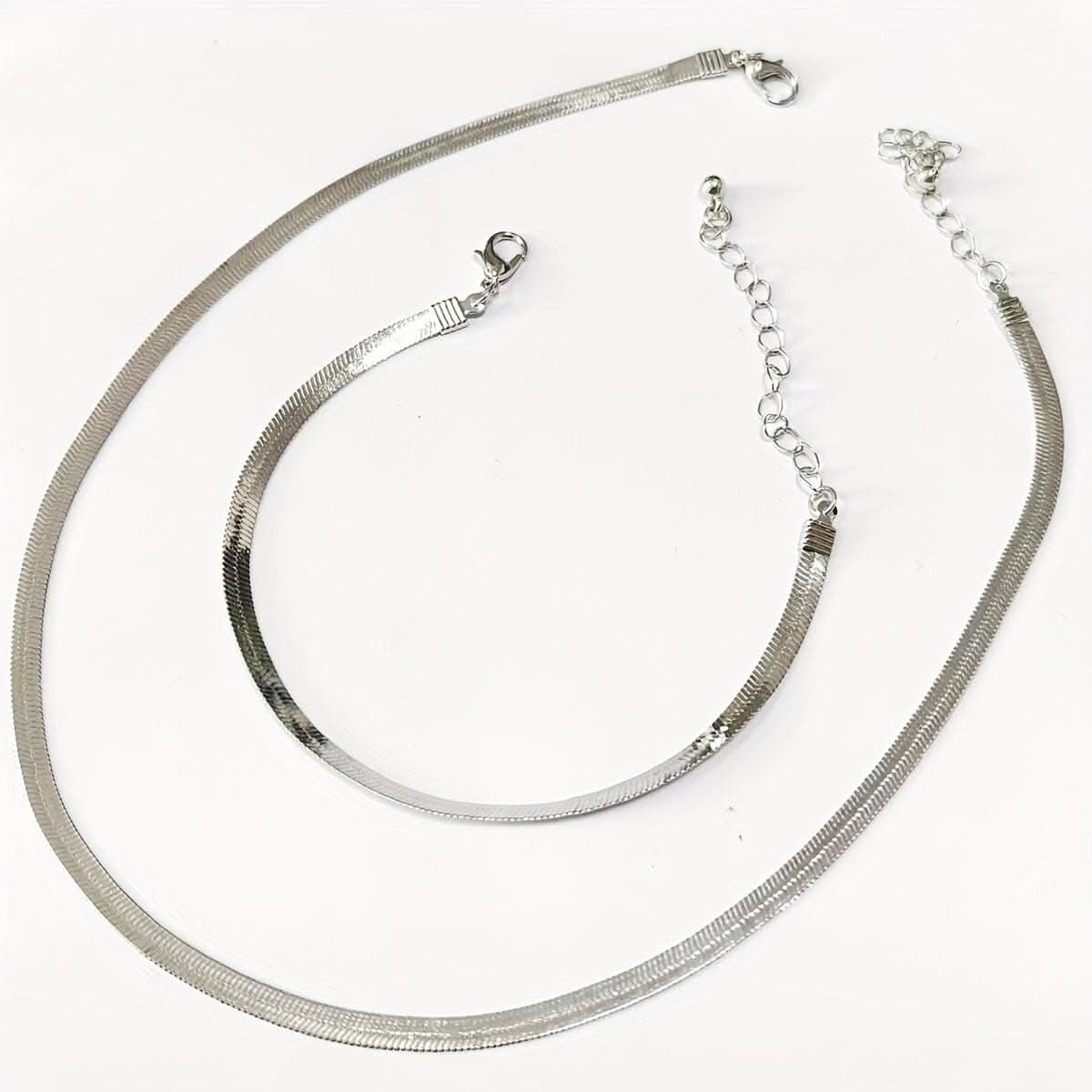 Minimalist Necklace & Bracelet Set – Trendy Snake Chain -