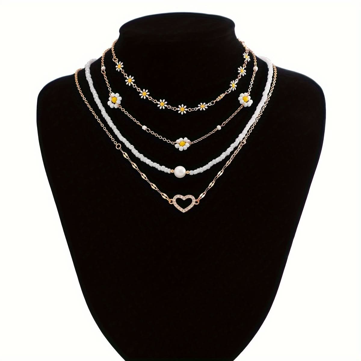 4pcs/Set Boho Chic Multilayer Pearl Beaded Necklace