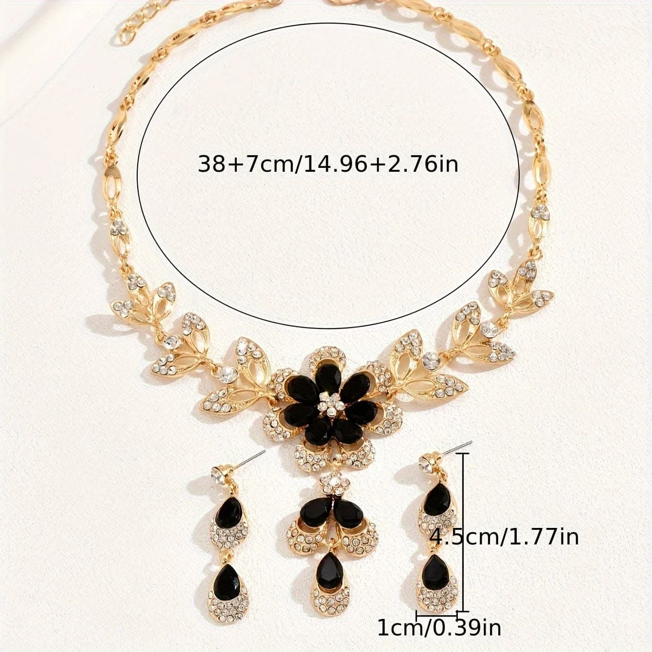 Dangle Earrings & Necklace Set – Copper Jewelry with Zircon Inlay, Flower Design -