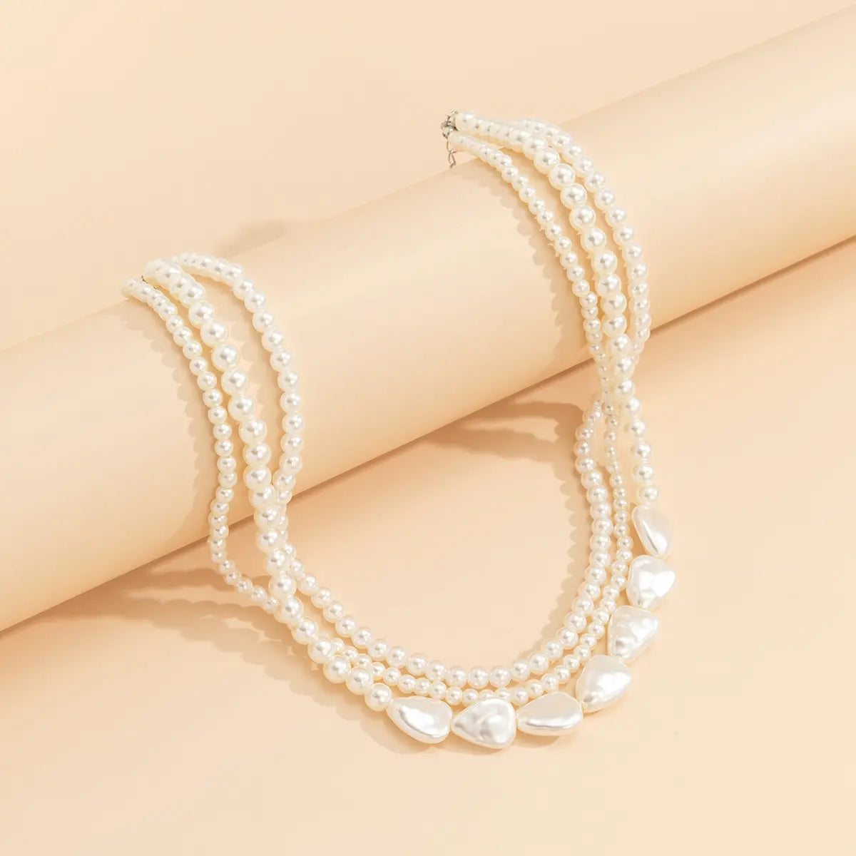 Modern Muse Triple-Layer Heart Pearl Necklace – Imitation Pearl Jewelry for Women