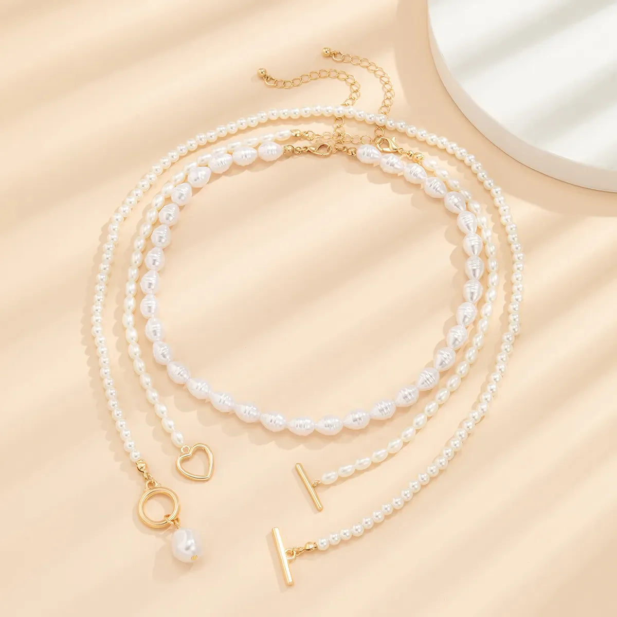 3-Layer Pearl Necklace Set for Women – With Heart & Gold Toggle Clasps -