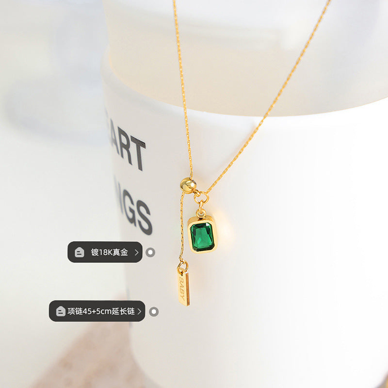Green Emerald Drop Pendant Necklace – Titanium Steel Minimal Chic Jewelry -