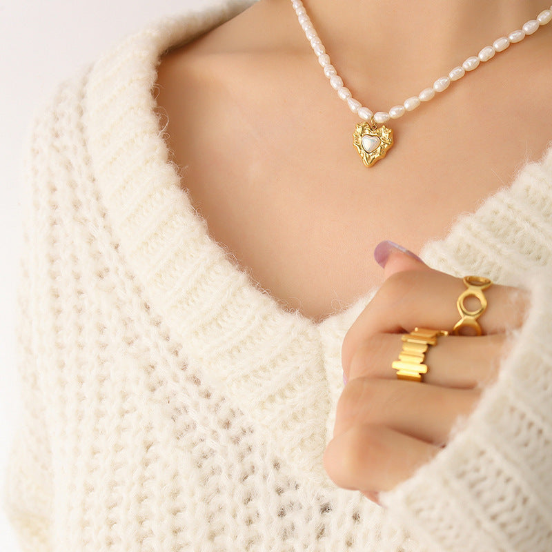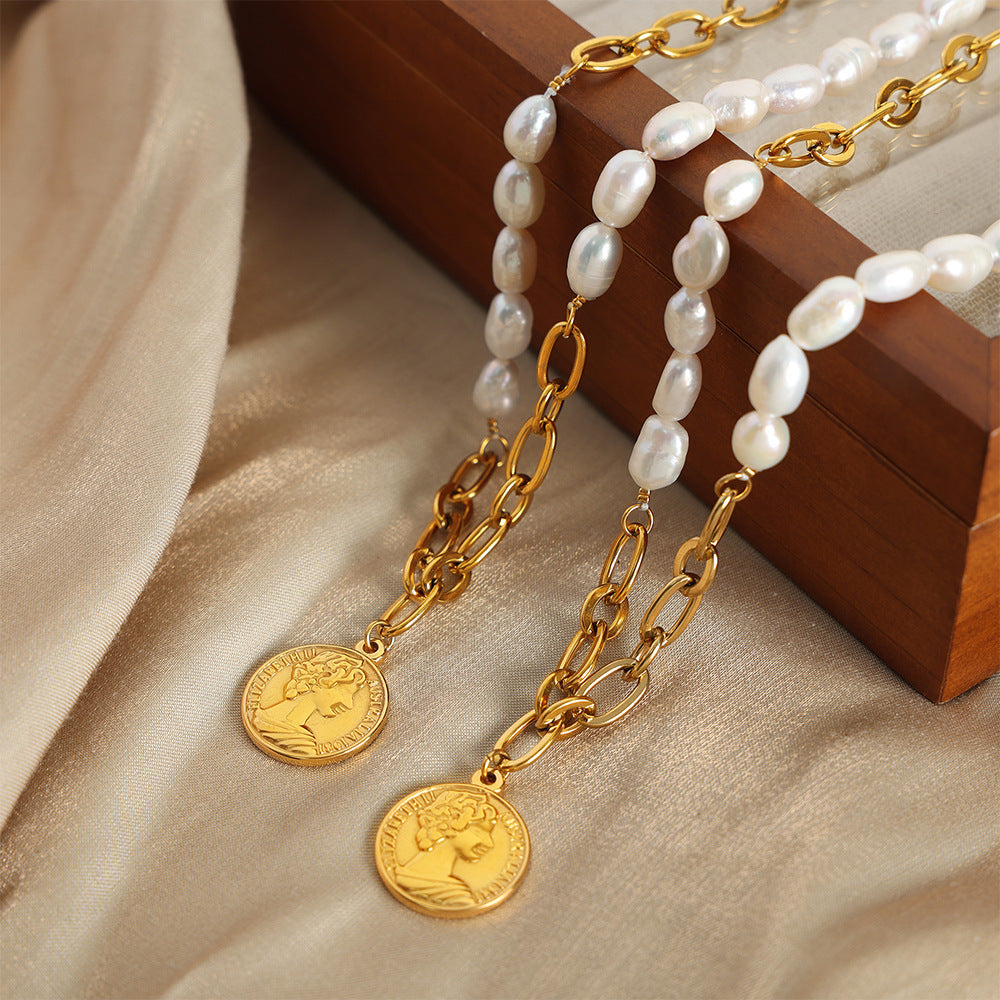 Gold Vintage Pearl Necklace with Freshwater Pearl Pendant – Titanium Steel Jewelry -