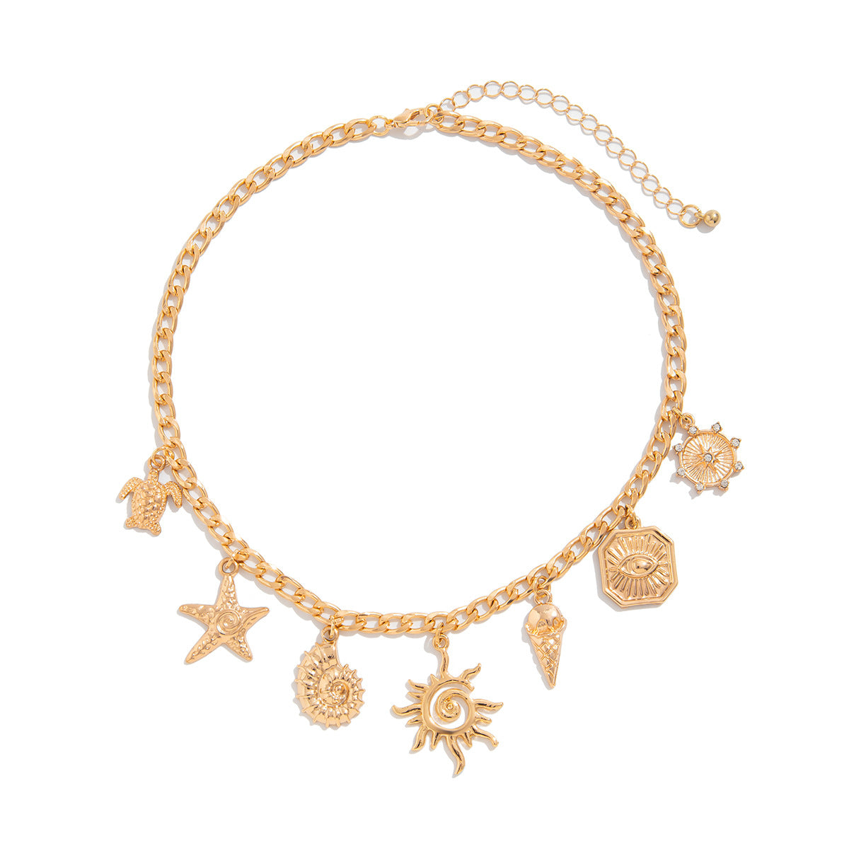 Gold Sea Charms Necklace – Summer Beach Vibes Charm Chain Pendant Jewelry -