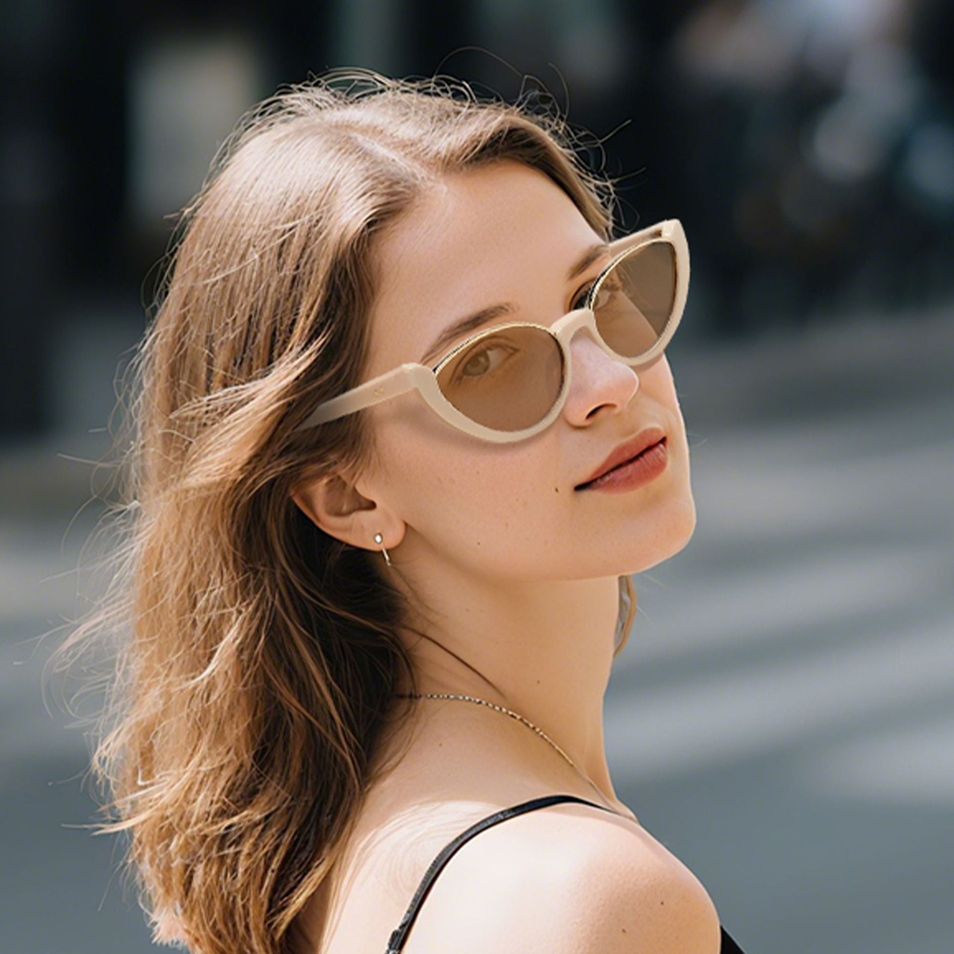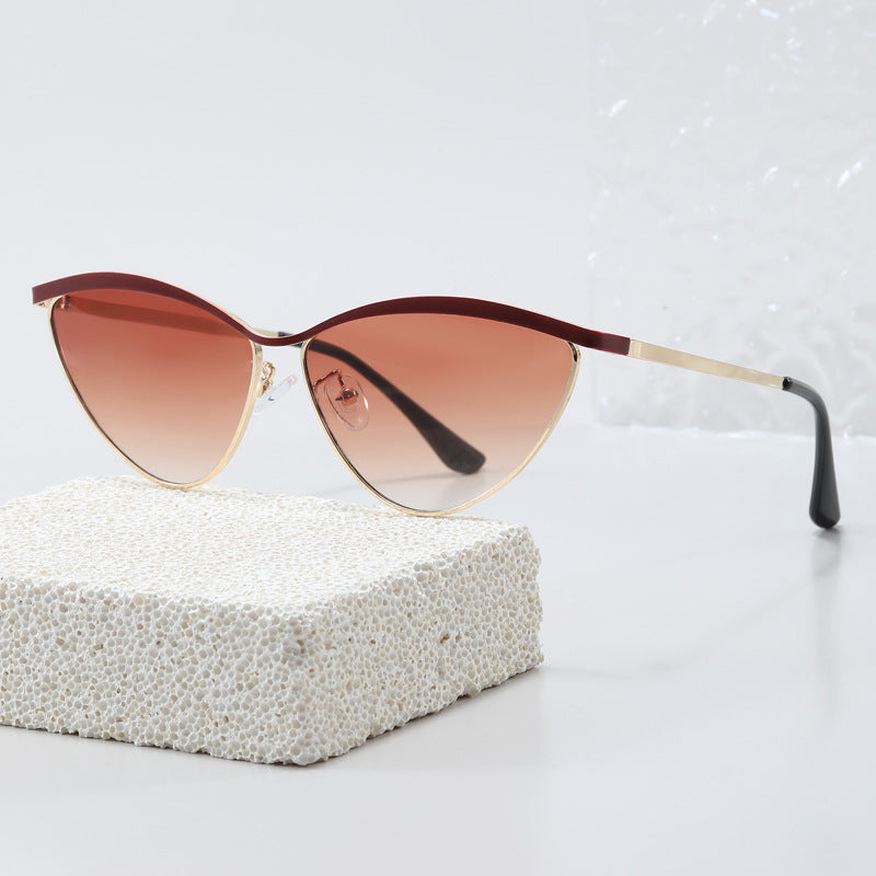 Oval Cat Eye Sunglasses for Women – Retro Metal Frame Trendy Shades -