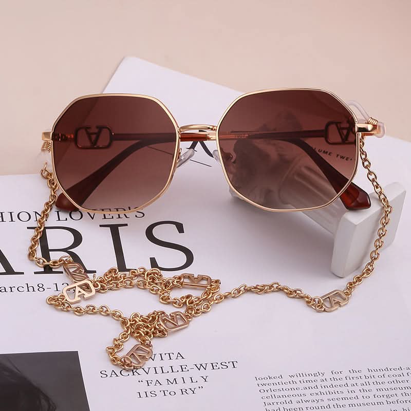 Trendy Women’s Sunglasses with Chain – Stylish Full-Frame Polygonal Shades -