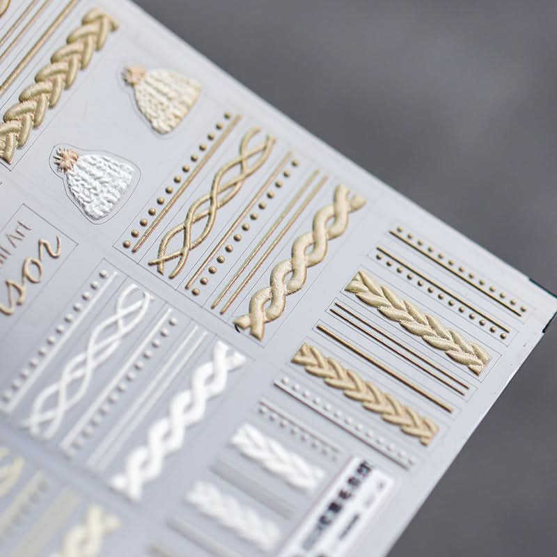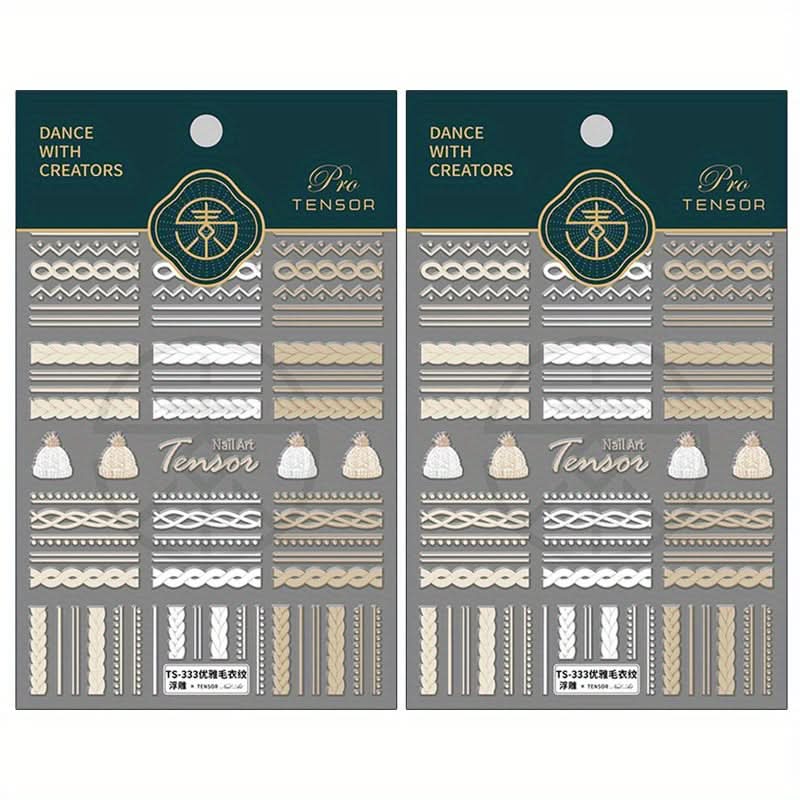 2pcs 5D Embossed Sweater Design Nail Art Stickers -