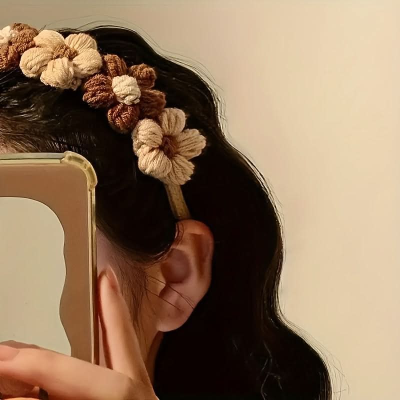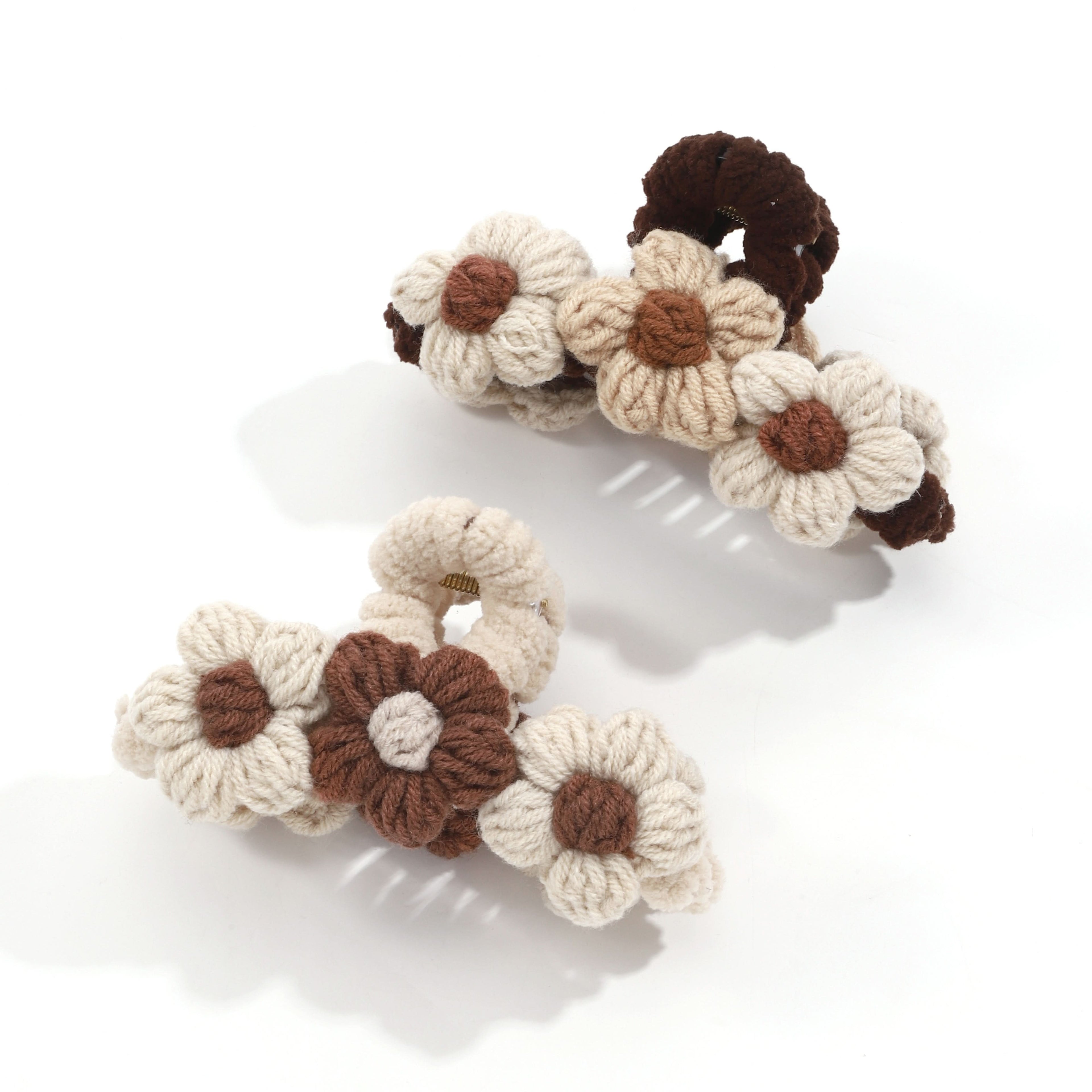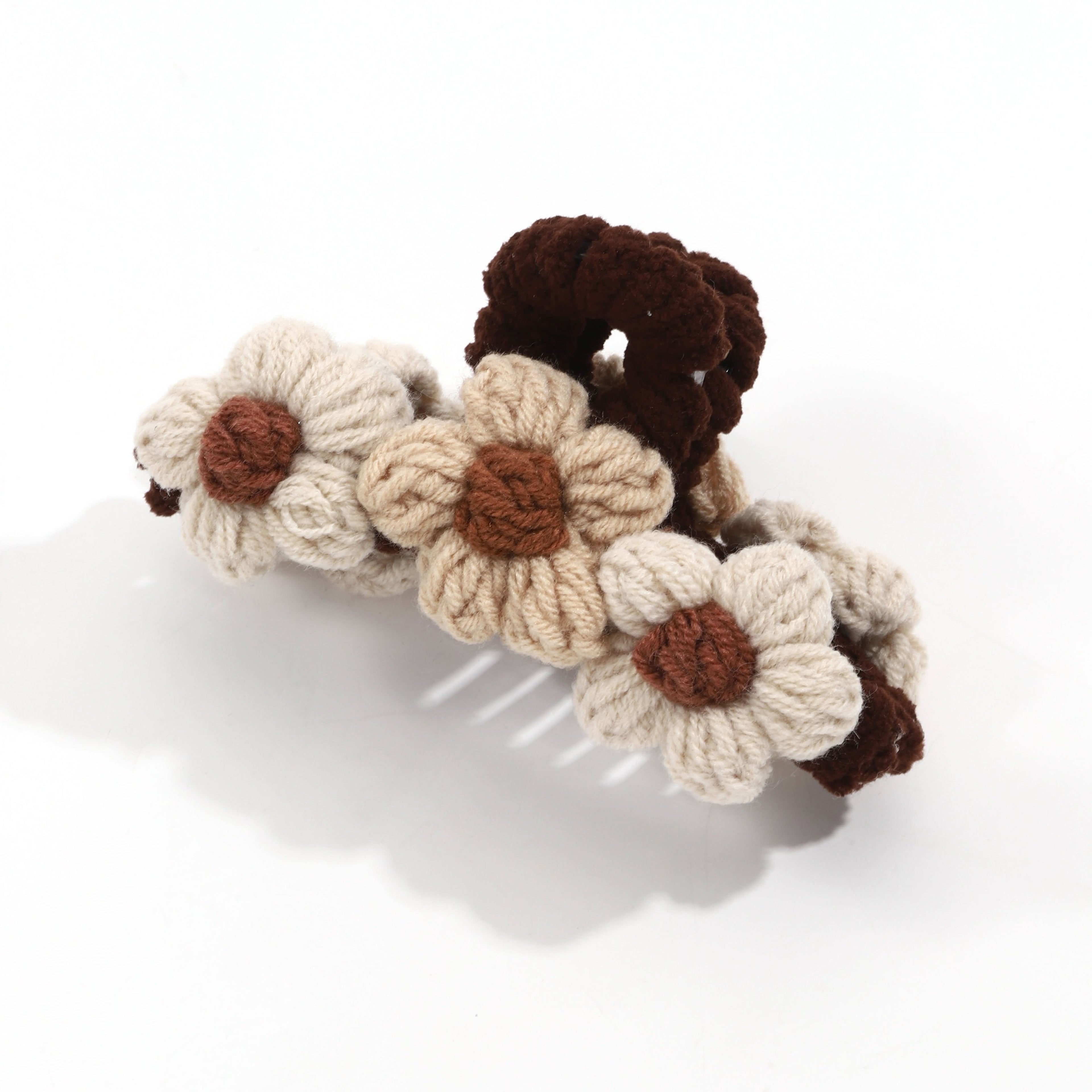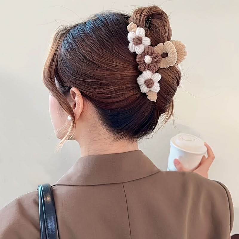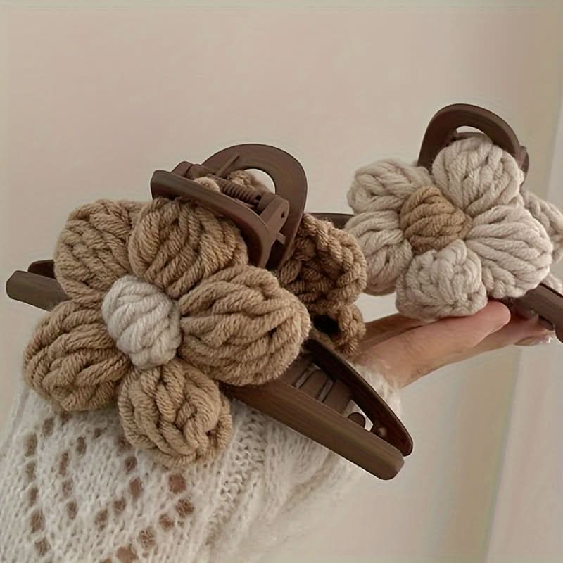 Vintage Flower Hair Claw Clip – Large Knitted Shark Clip for Women -
