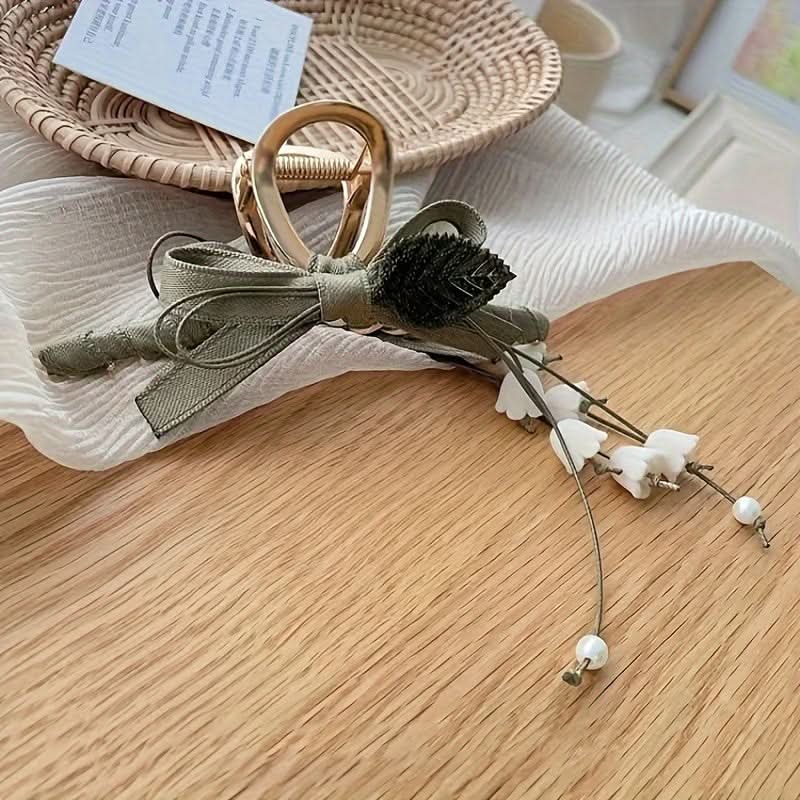 Vintage Lily of the Valley Hair Claw – Large Handcrafted Shark Clip for Women -