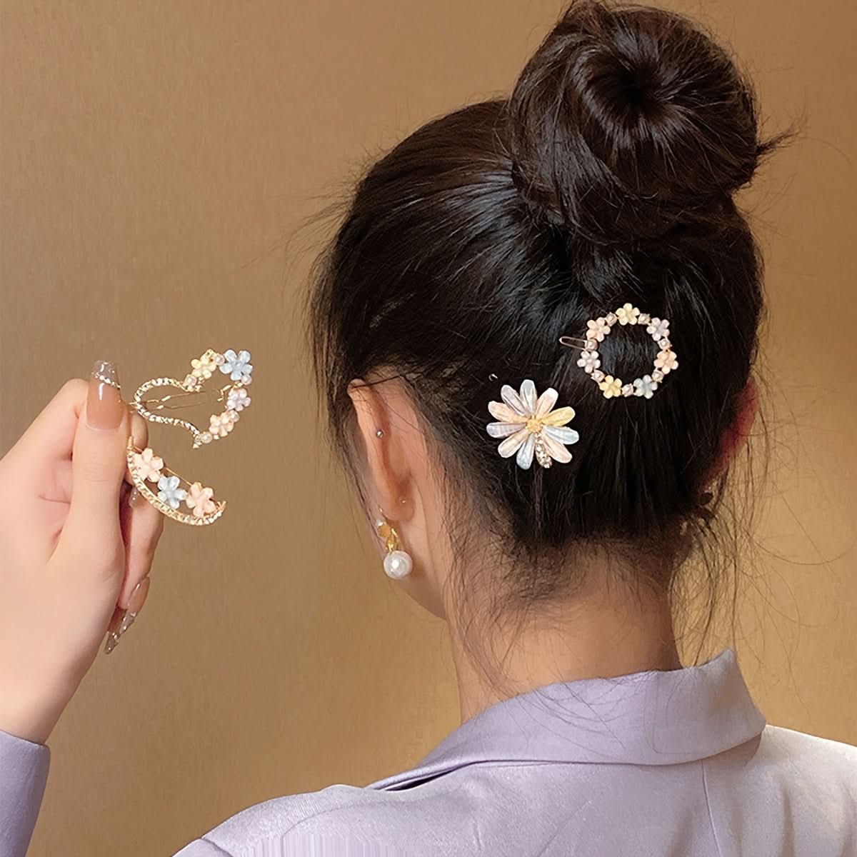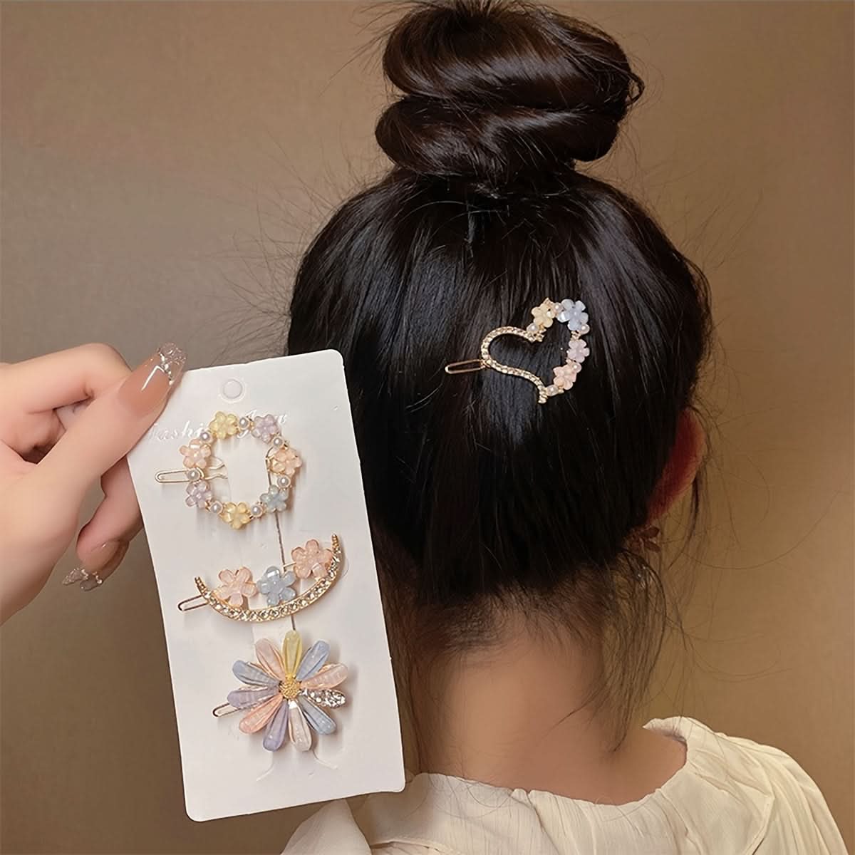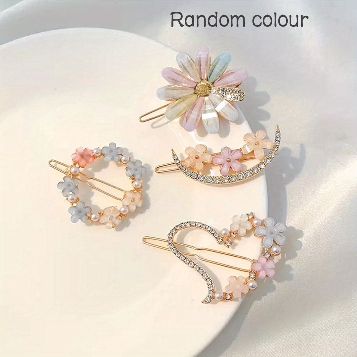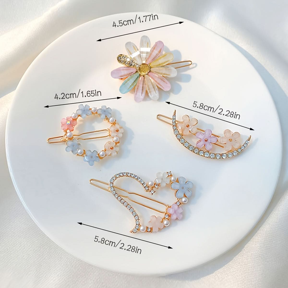 Sparkling Flower Rhinestone Hairpins - Glamorous Hair Accessories (Set of 4 pcs.) -