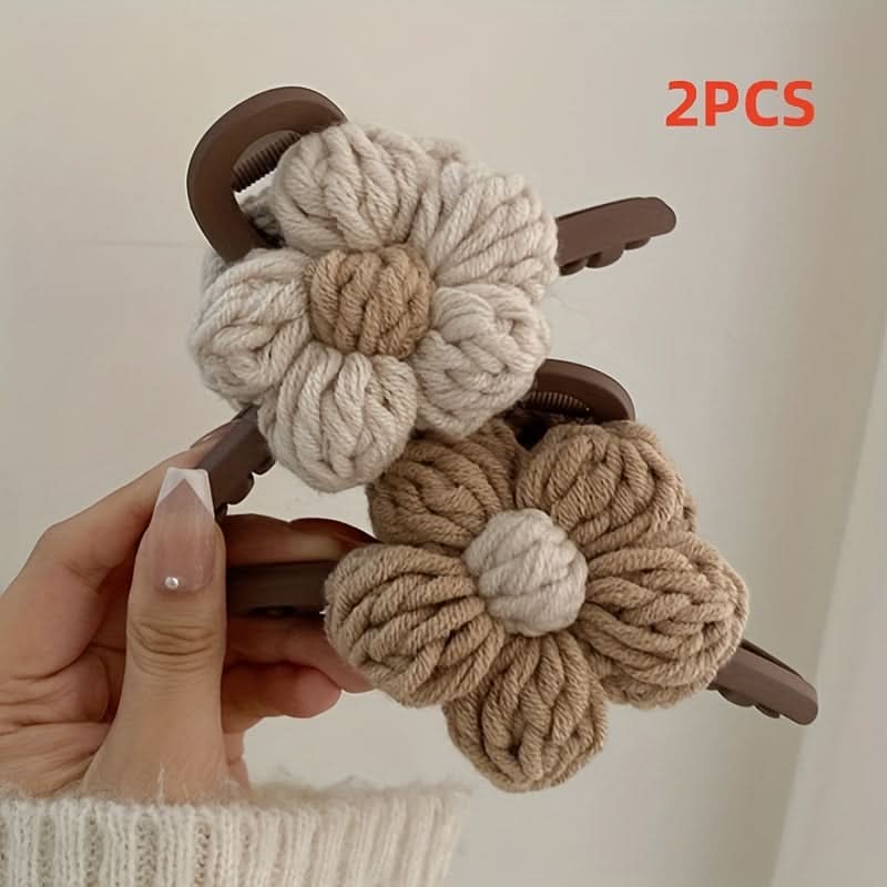 2PCS Large Knitted Floral Hair Claw Clips – Strong Grip for Thick or Thin Hair -