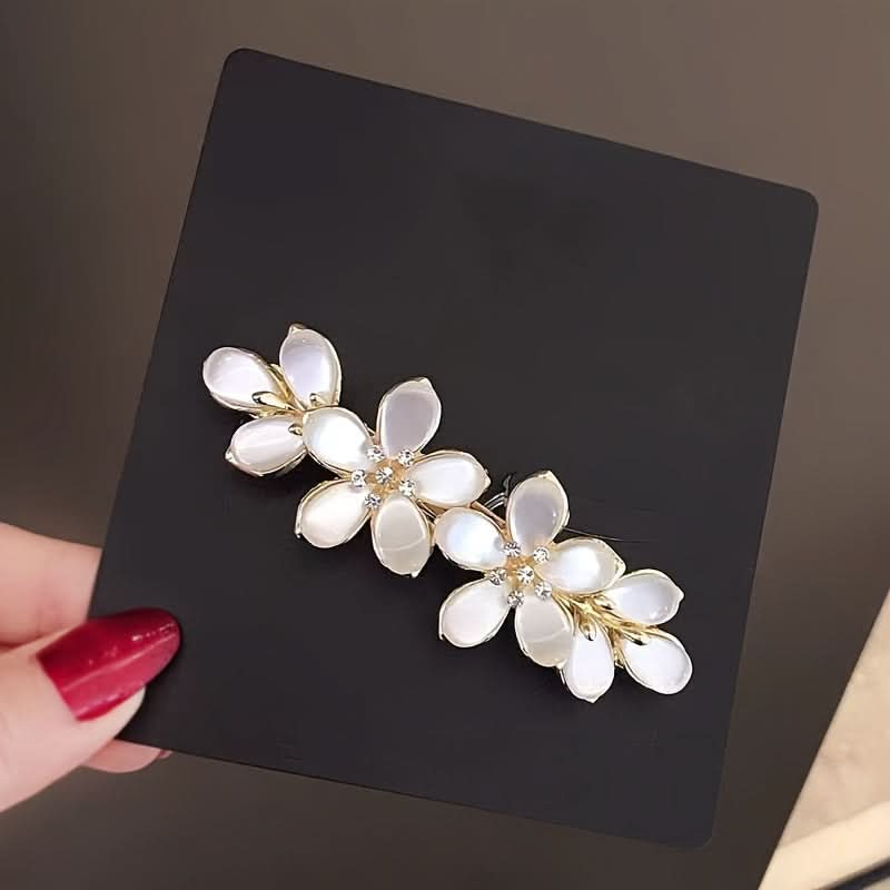 Luxurious Floral Hair Barrette - Rhinestone Accents -
