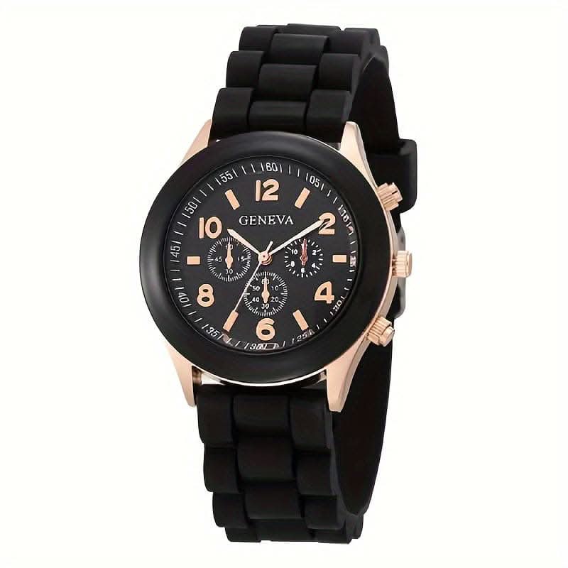 Stylish Round Quartz Watch with Triple Dial & Silicone Band – Unisex Sports Wristwatch -