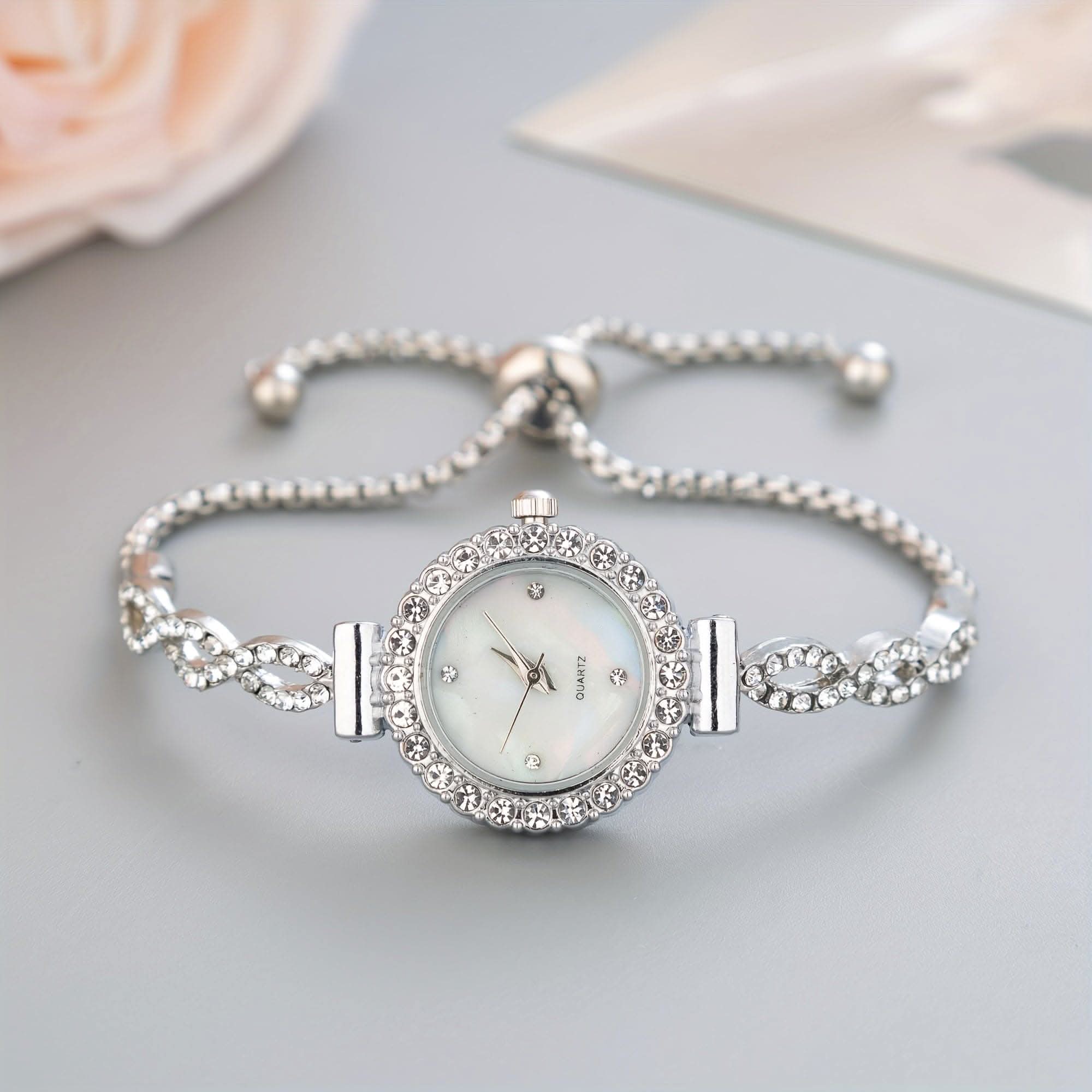 Luxury Women's Rhinestone Quartz Bracelet Watch – Elegant Iridescent Dial -