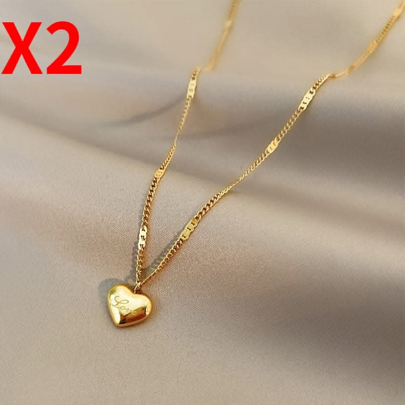These elegant golden love shape necklaces in stainless steel are perfect for adding a touch of sophistication to any party outfit. Ideal as a stylish gift for ladies, combining fashion and sentiment.