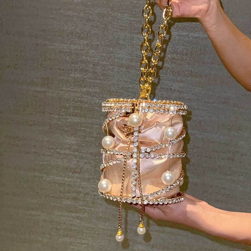 Add a touch of luxury to your formal ensemble with this stunning champagne evening clutch, crafted with exquisite rhinestone embellishments that sparkle beautifully in any light. Made from durable metal, this lightweight bag combines elegance with function, featuring a secure magnetic closure to keep your essentials safe. Its spacious interior, lined for added sophistication, comfortably holds your phone, lipstick, and other small items, making it perfect for weddings, banquets, parties, and other special occasions. Designed to elevate any outfit, this clutch complements both classic and contemporary styles, adding a refined touch to your evening look. A must-have accessory for those seeking elegance and timeless style!